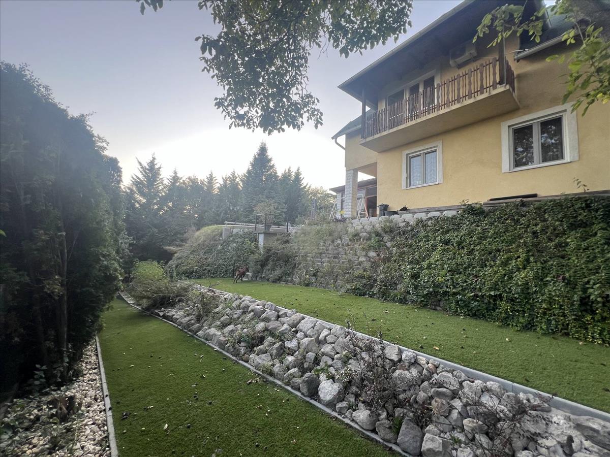 Az ingatlan egy gyönyörű, parkosított, 692 m2-es telken fekszik a hegyen, csendes, nyugodt környezetben. a telek körbe kerített. 1 Autó számára a parkolás fedett autóbeálló alatt biztosított, elektromos kerítéses, zárt területen. További parkolásra az utcában van lehetőség.
