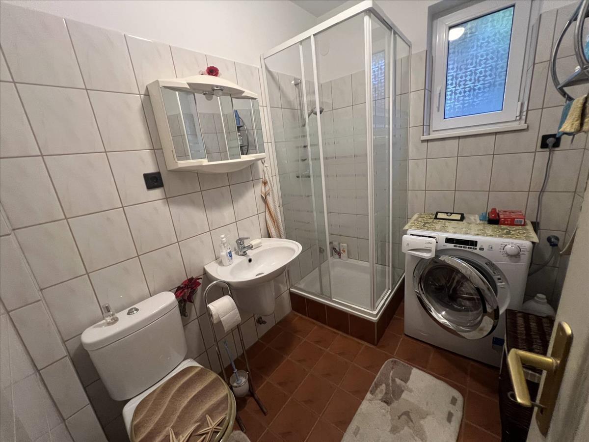 Az épület kétszintes, 80 m2 hasznos alapterületű. a földszinten található egy szoba, egy étkezős konyha, egy zuhanyzós fürdőszoba, egy spájz, illetve 2 tárolóhelység, melyek egyenként kb. 6 m2-esek.