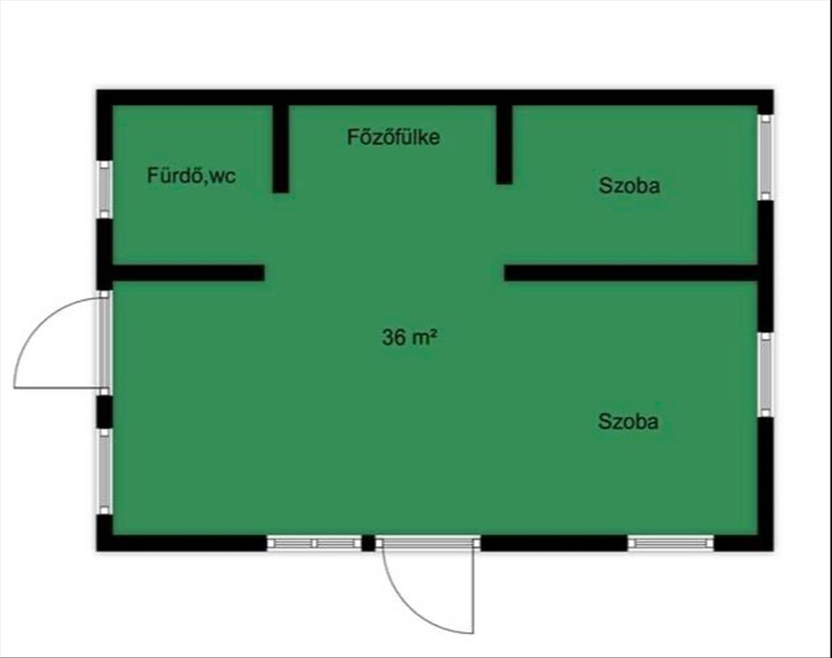 A helység egy tágas szobára, egy fél szobára, fürdőszobára, WC-re és egy főzőfülkére osztható, így kényelmes elrendezést biztosít.
