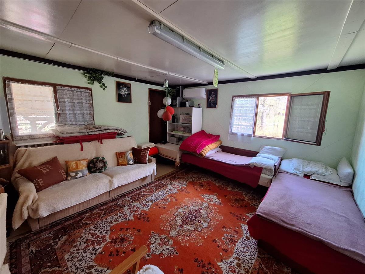 A házban 2 szoba, főzőfülke és fürdőszoba található. Az alsó szoba kényelmes méretű (18 m2), az emeleti a fürdőszobában wc, mosdó és zuhanytálca lett beépítve. a házban 2-3 éve vezetékelték át a villanyt, továbbá 32A-re lett átszerelve. a kellemes hőmérsékletet egy mdv klíme biztosítja. Az udvaron gyűrűs kút, ami a ház vizellátását biztosítja.