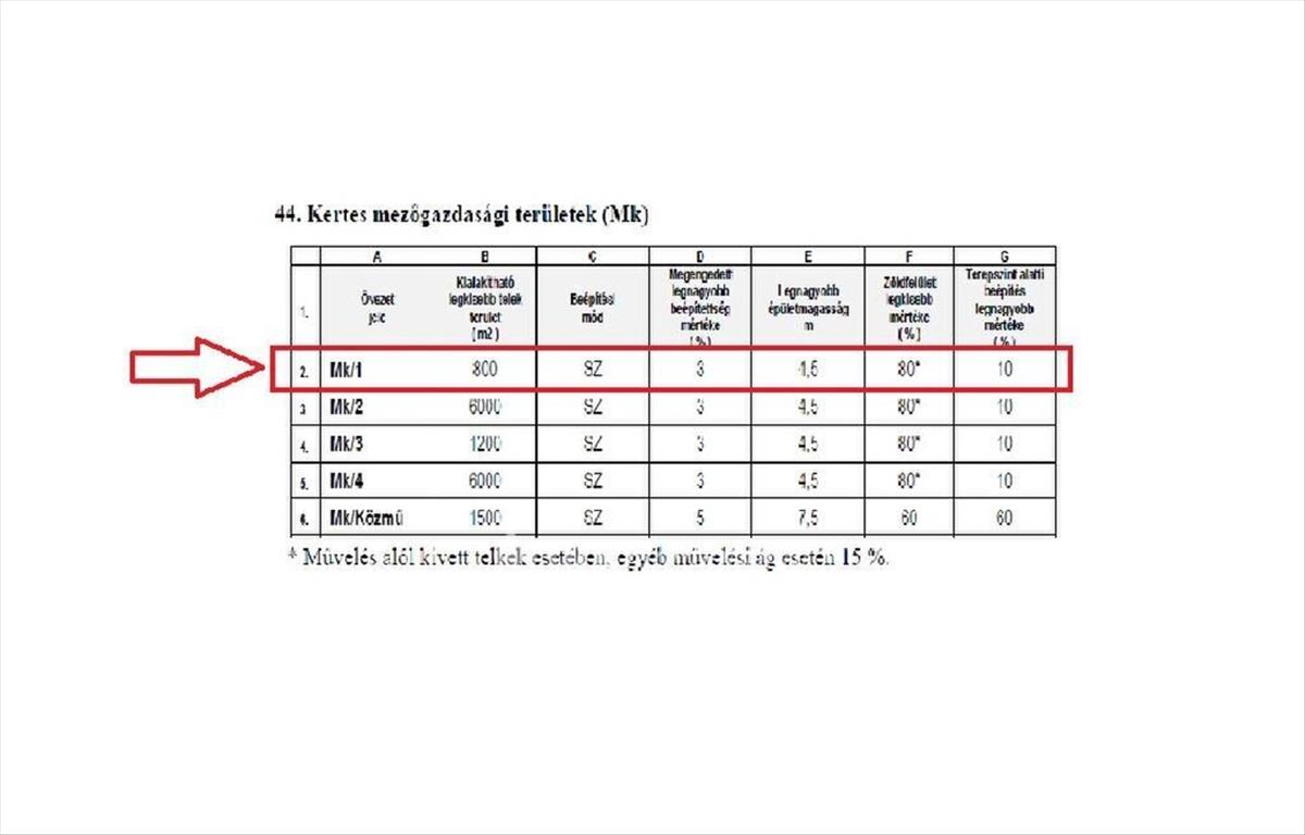 A telek 3%-a beépíthető, a környék zöld nyugalmában már sok lakóház áll. Az építmény maximális magassága 4, 5 méter lehet. Miután kiemelt zöldövezeti rész, így a zöldterületből 80%-ot meg kell tartani.