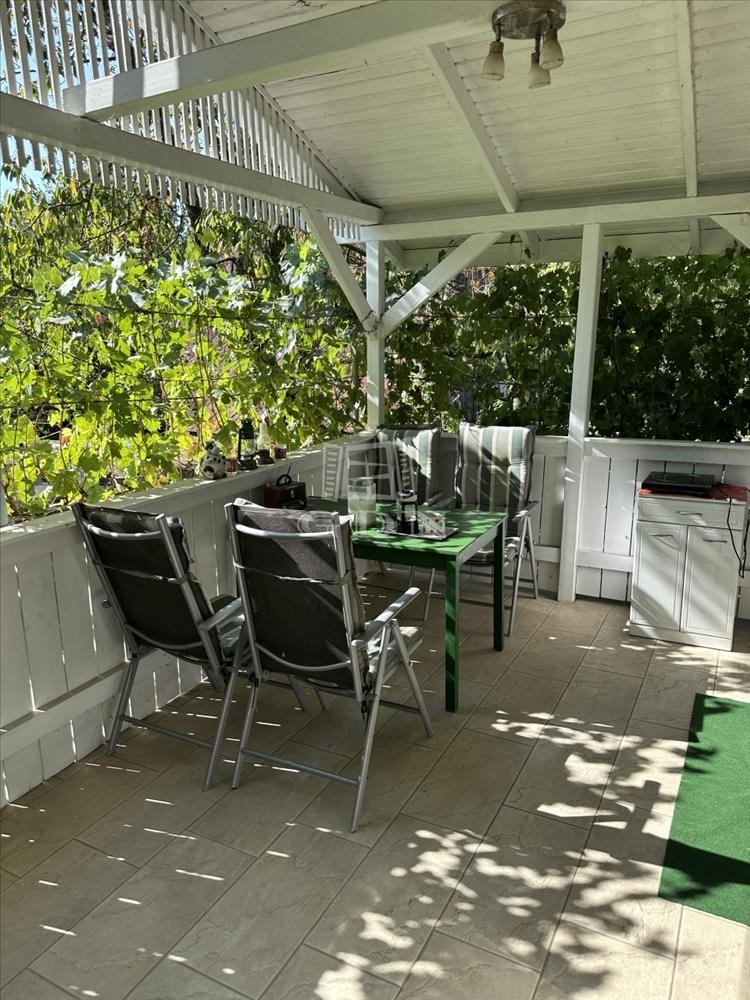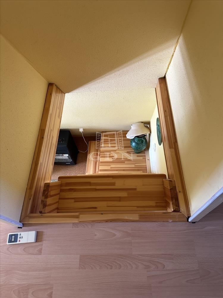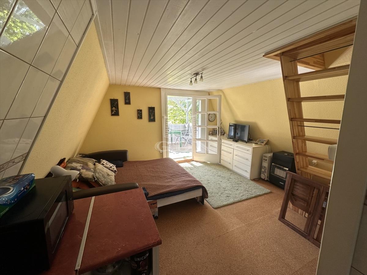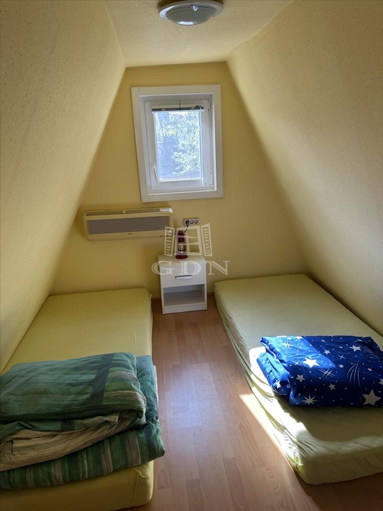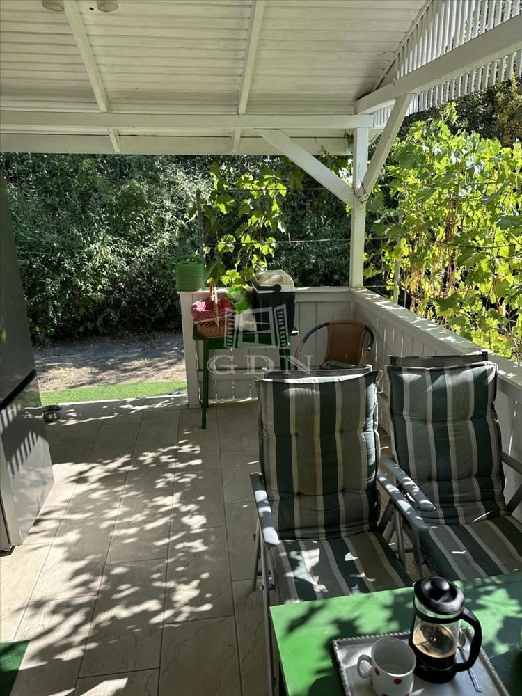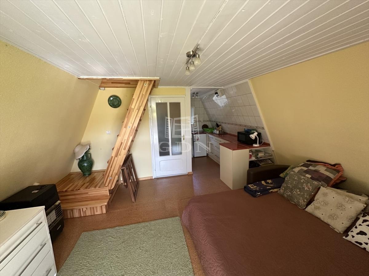 A telken található egy 30 m2-es hasznos alapterületű kétszintes faház. Alsó szint-nappali, konyha, fürdőszoba, felső szint-két hálő helység. a zuhanyzóban a meleg víz előállítás elektromos átfolyós vízmelegítővel megoldott.