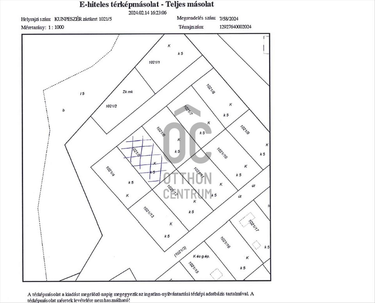 Kunpeszér, üdülőüvezeti részén 836 nm-es, zártkerti telek elad...