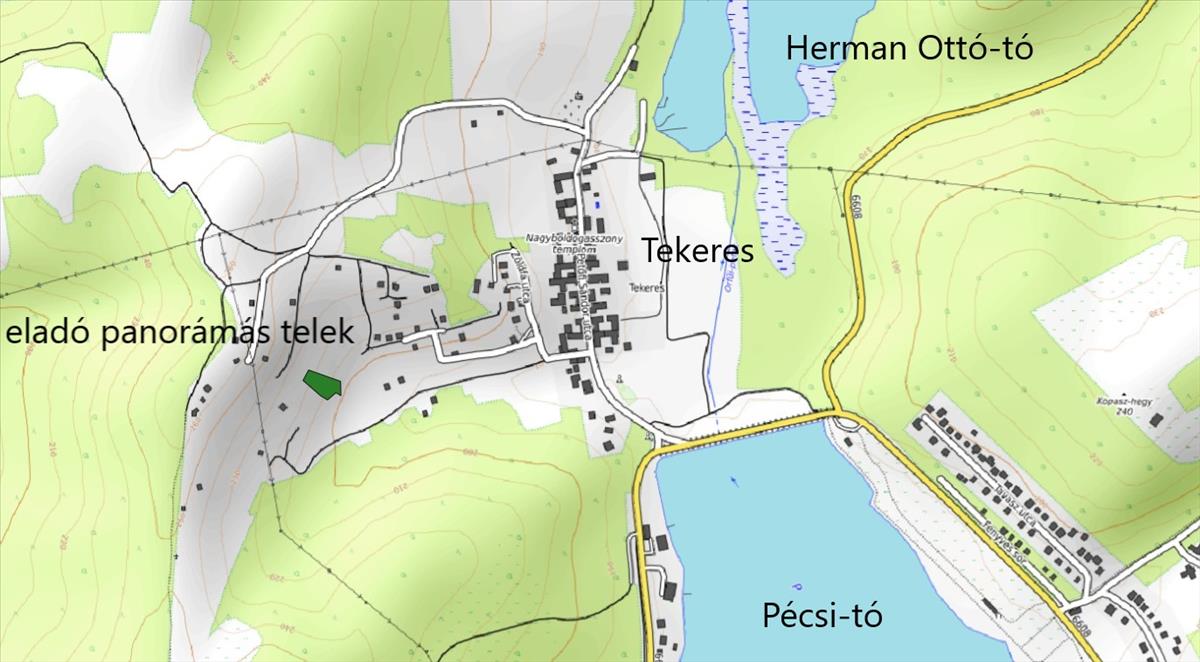 Eladó Orfű-Tekeresen, a Cseresznyés közben egy 1743 m2 alapterületű zártkerti ingatlan.
