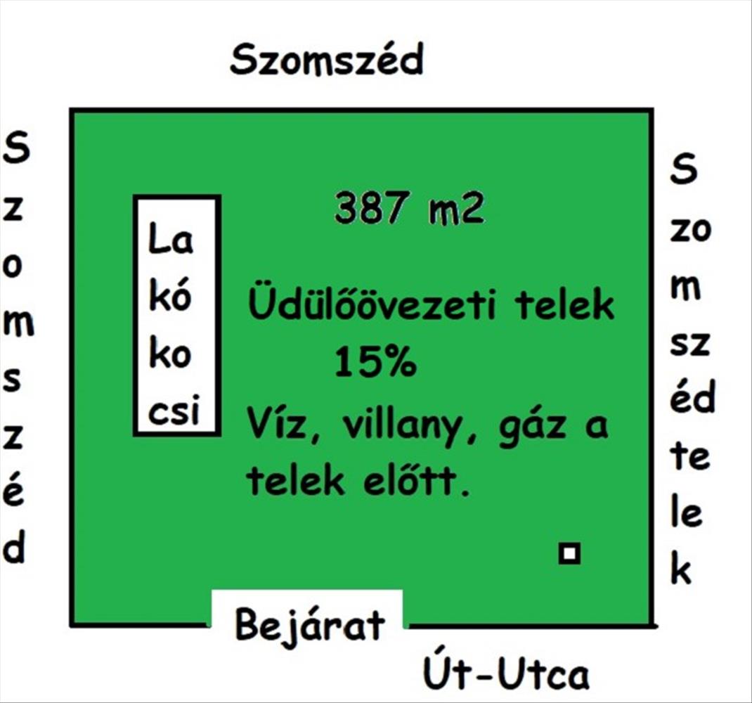 A telek környezetében egy szomszéd kivételével épített ingatlanok vannak. Több ingatlan is épül a közelben. Többen itt is laknak. a szomszédok rendesek.