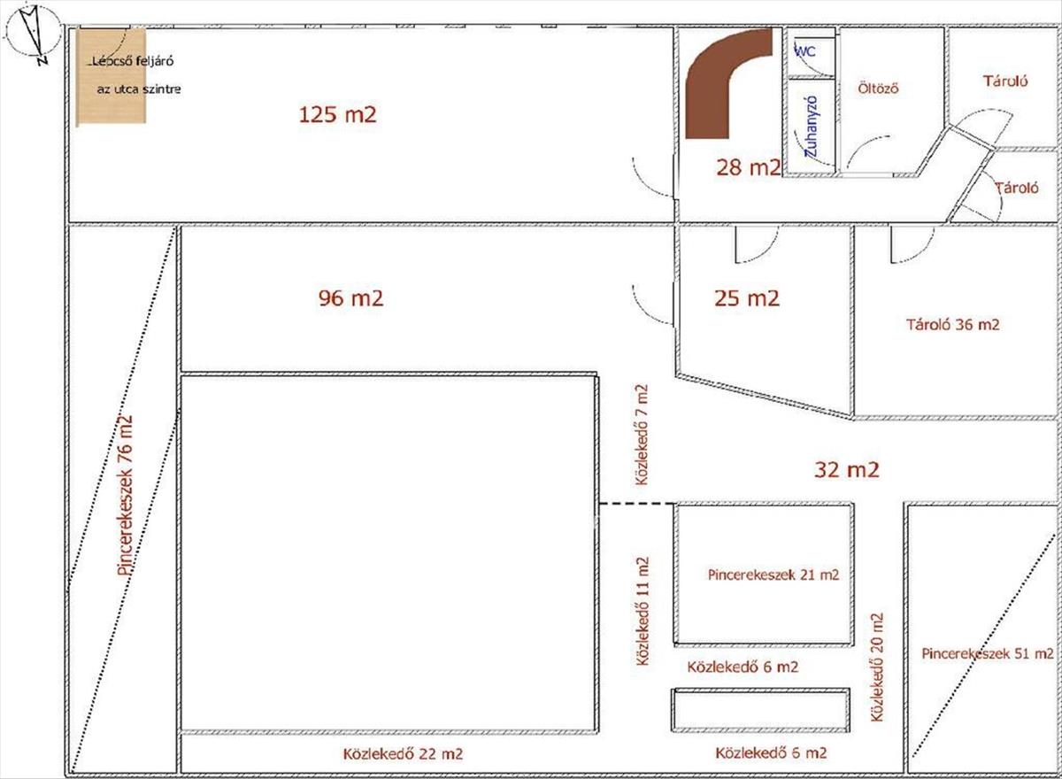 - 359 Nm-en elosztva: számos tárolóhelyiség, egy külön munkavállalói öltöző, fürdőszoba és wc a vendégek vagy munkatársak számára.