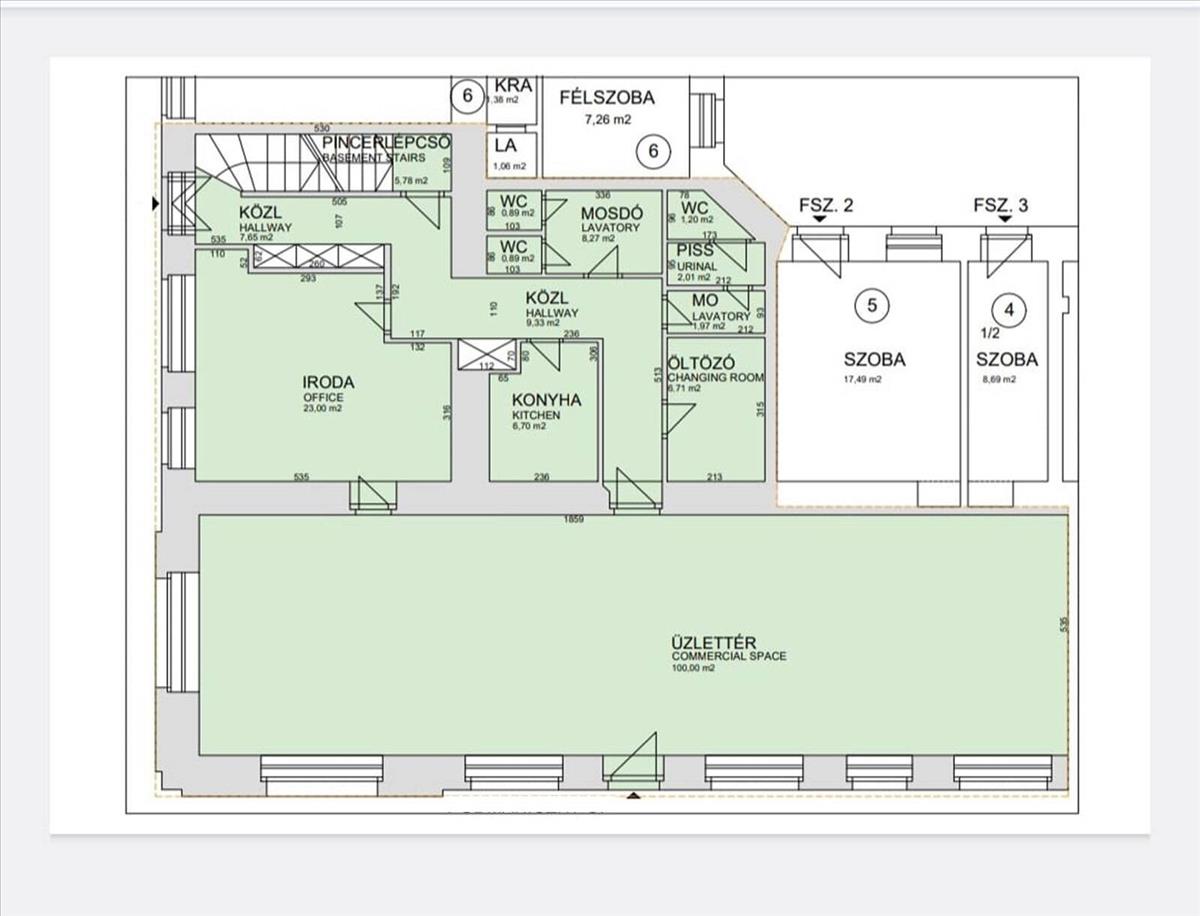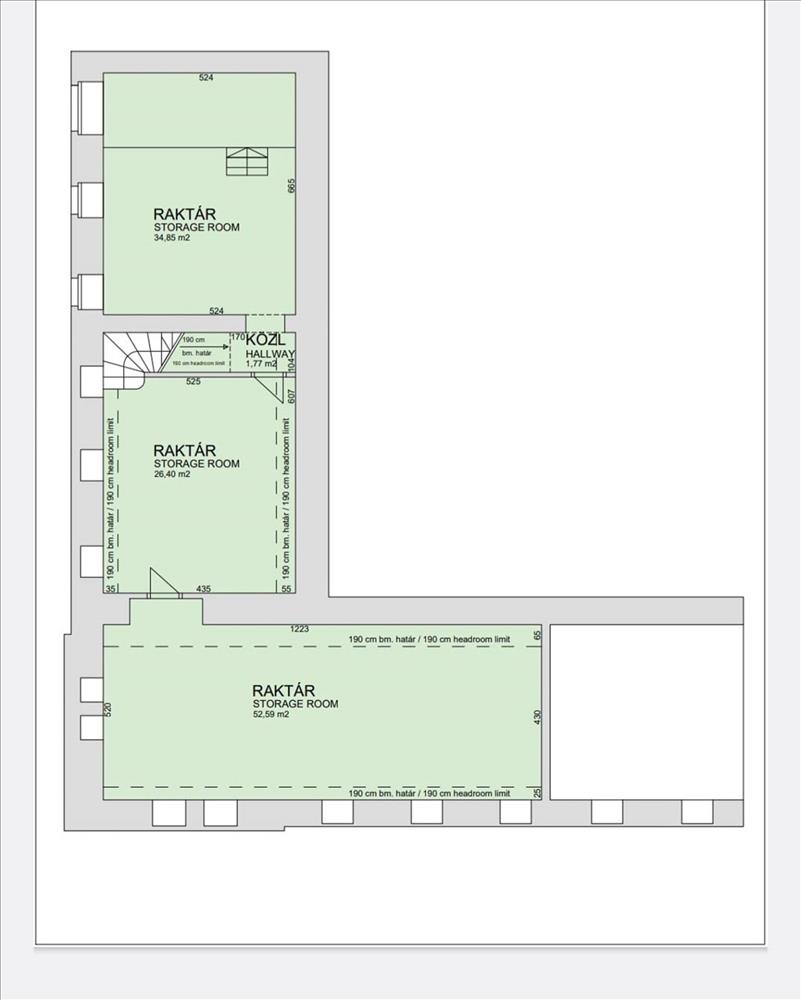 •Alagsor – 115 m²: irattár/raktárblokk, utcai árucsúszdával