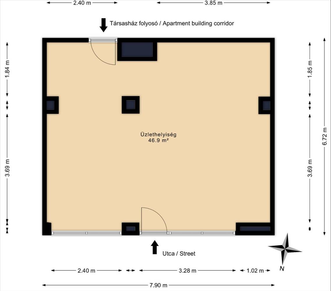 - bejárattal az utca és a társasház folyosója felől is,
