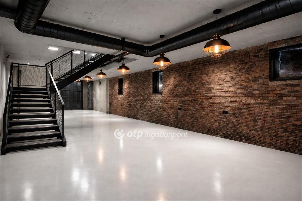 A felső - 15 nm - közvetlenül az utcáról közelíthető meg, ebből nyílik a raktár - 108 nm -, amely 14 lépcsővel lejjebb található. A közművek a gáz kivételével benn vannak.