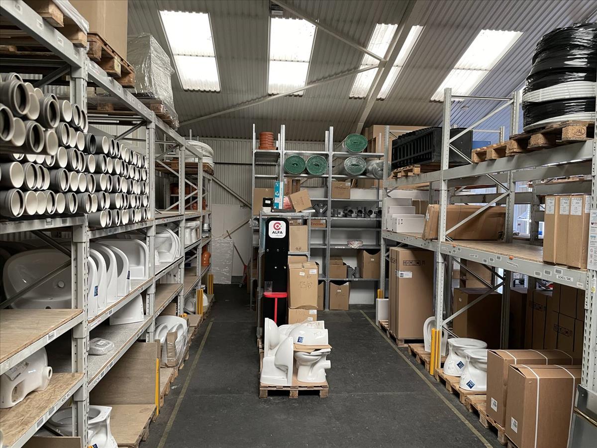 A telek hátsó részén elhelyezkedő, szigetelt, nagy belmagasságú, targoncázható raktárépület.