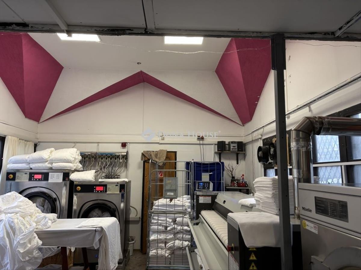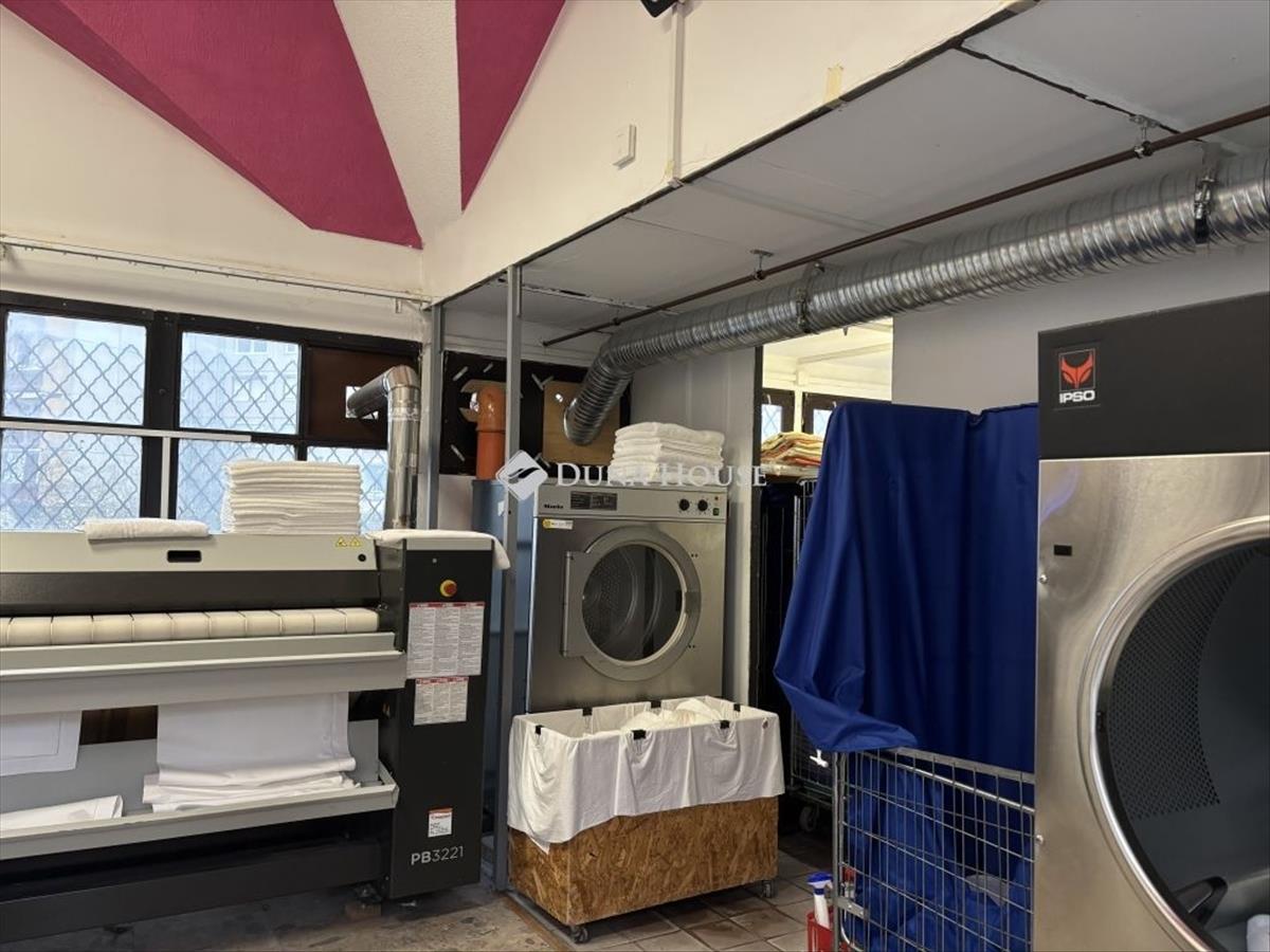 Az üzlettérbe lépve szép, nagy, világos, kupolás látvány fogad minket. Balról a fal mellett végig fut a gépészeti helyiség és tároló, jobbra találunk egy közlekedő részt, WC-t, konyhát, ahol a mosogatón kívül, kialakítottak egy tusolót is a sarokban. Minden közmű megtalálható, villany, víz, gáz csatorna. Villanyból nagyobb teljesítmény áll rendelkezésre, összesen 3x40 Amper. Fűtését Vaillant gázkazán biztosítja, a meleg vizet Hajdú bojler adja.