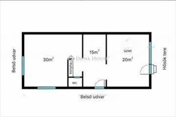Az utcafrontról és a belső udvar felől is megközelíthető, továbbá részben pincével is rendelkezik.