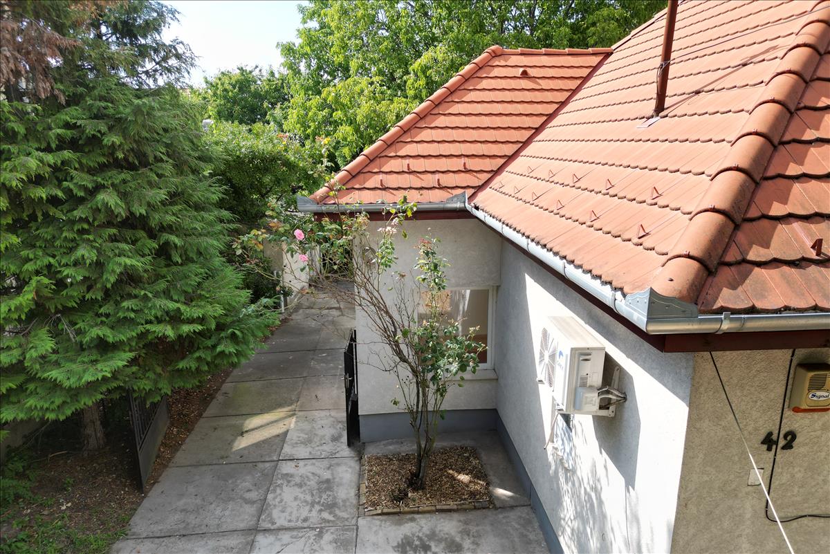A vegyes falazatú ingatlan 2010-ben teljeskörű felújításon esett át, ekkor csak a falak álltak, az aljzat és szigetelés, a belső kő burkolatok, a teljes elektromos vezeték-rendszer cserére került, az új vízvezetékek az épületen kívül kerültek bevezetésre és sorban érik el az egyes vizesblokkokat, a szennyvízcsövek is ekkor lettek fektetve, a födém és a tető is ekkor készült, a nyílászárókat cseréltük, minden új anyagokból. Eredetileg állatorvosi rendelő céljából újítottuk fel, így rejtett vizesblokk található az egyik üzlethelyiségben is (harmadik mosdó is kialakítható, de falba van rejtve jelenleg) és mindenhol időtálló kültéri padlókő burkolat van, de végül ez a rendeltetés nem valósult meg. Azóta térképészeti cég használta székhelyként és irodaként. Az értékesítés oka a cég költözése. Az ingatlanhoz tartozó telken két gyümölcsfa és egy hatalmas diófa áll, illetve örökzöldek találhatók. Az udvar első betonozott része három személygépkocsi, a most elkészült kocsibeálló pedig két személygépkocsi befogadására alkalmas. a vízórákat és villanyórákat idén cserélték a szolgáltatók, az épület padlásszigetelésére pályázatot nyertünk, így ez heteken belül várható, de a födém betongerendái és kialakítása még megtekinthető. Az üzlethelyiségek egyben klimatizáltak, az épület minden helyiségét védi a riasztórendszer.