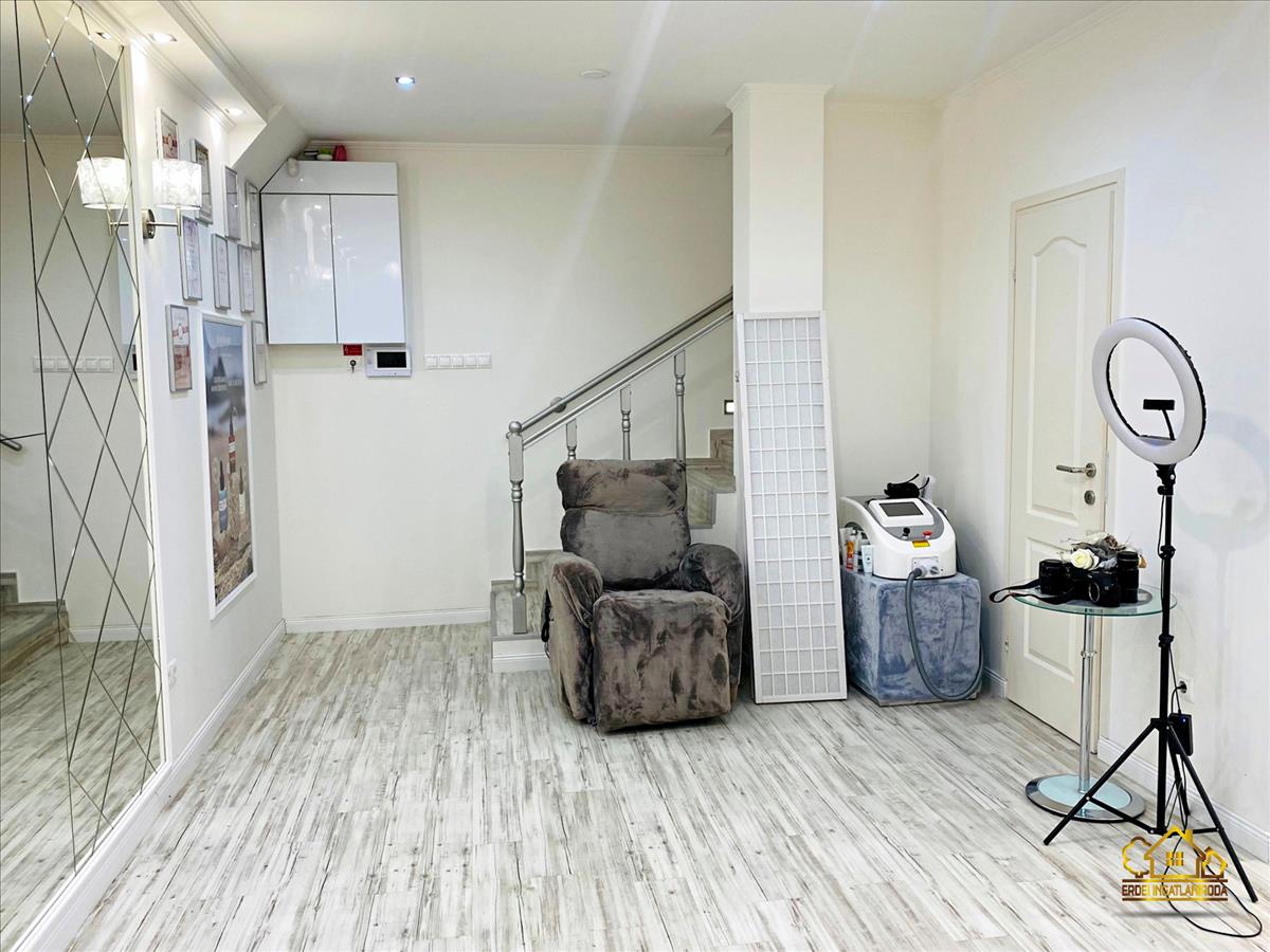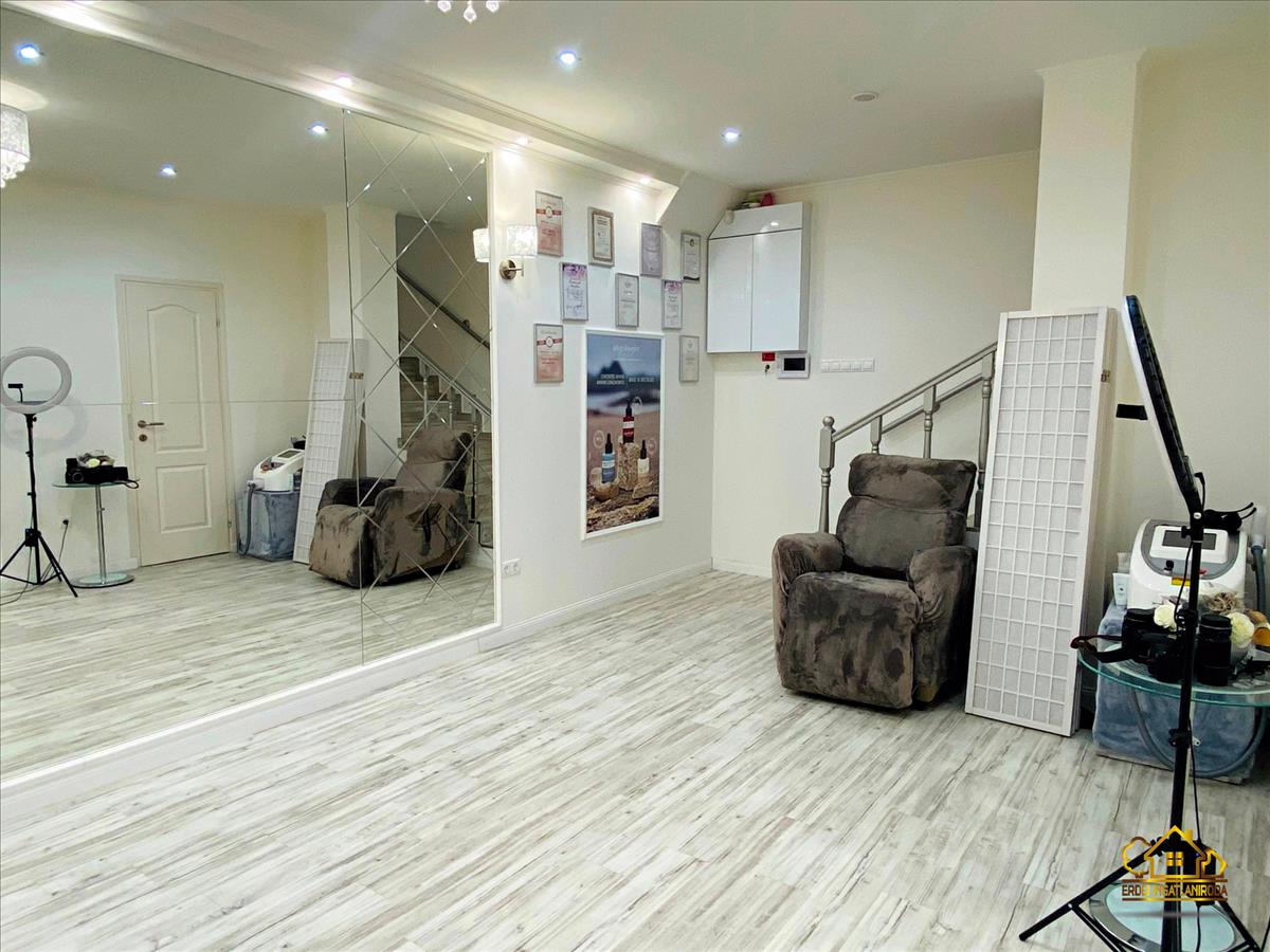 A szalon üzlettere 2 részre osztott, mely szintenként 35 m². a földszinti részen található egy váró helyiség egy minikonyha és egy mosdó + zuhanyzó helyiség. a pince szinten egy nívósan berendezett kozmetikai helyiség és egy tároló.