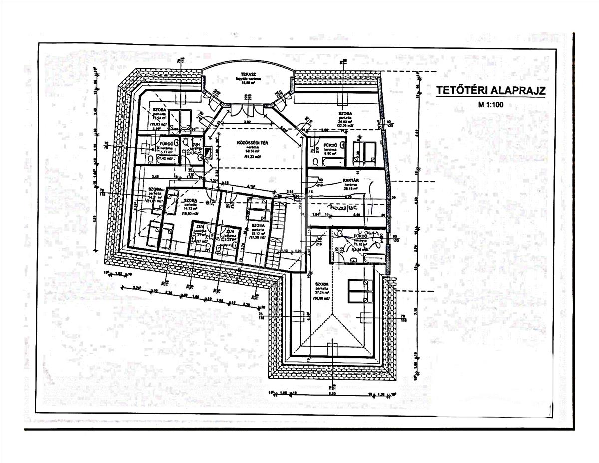 - Felette található két apartman, valamint három darab szoba, saját fürdőszobával és wc- vel.