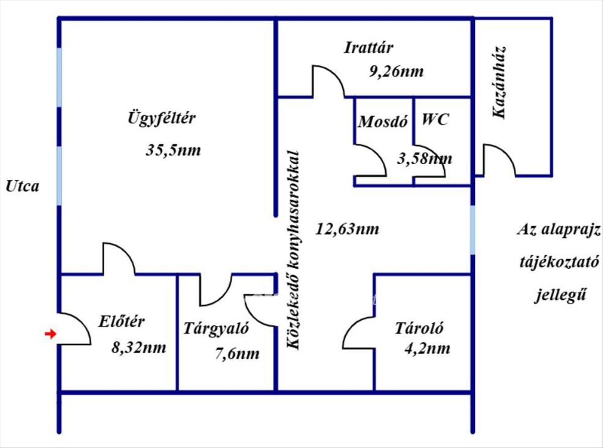Jász-Nagykun-Szolnok megyében, kunmadarason eladásra kínálunk egy 2006-ban felújított, üzlethelységként használt ingatlant.A felépítmény az 1970-es években épült, 81nm alapterülettel. Az egyszintes, magastetős, cserépfedésű, tégla teherhordó falazatú üzlet, szerelt gipszkarton válaszfalakkal, vasbeton gerendás, béléstestes födémmel készült. Az ingatlanban kialakításra került egy ügyféltér, előtér, tárgyaló, irattár, tároló, közlekedő konyharésszel, mosdó Wc-vel.