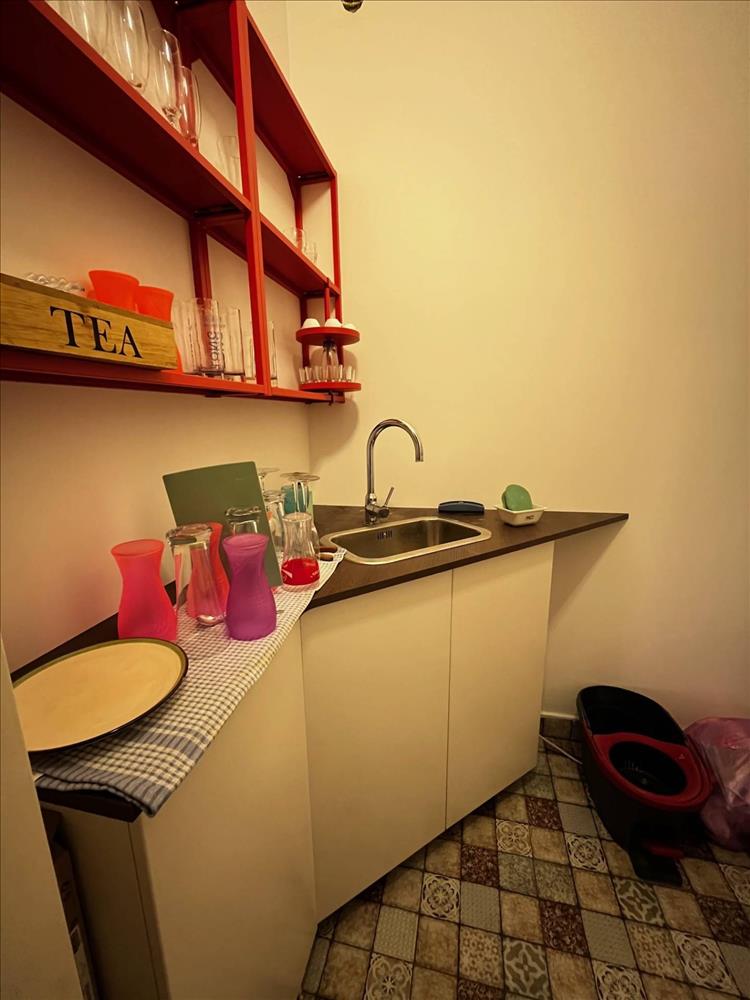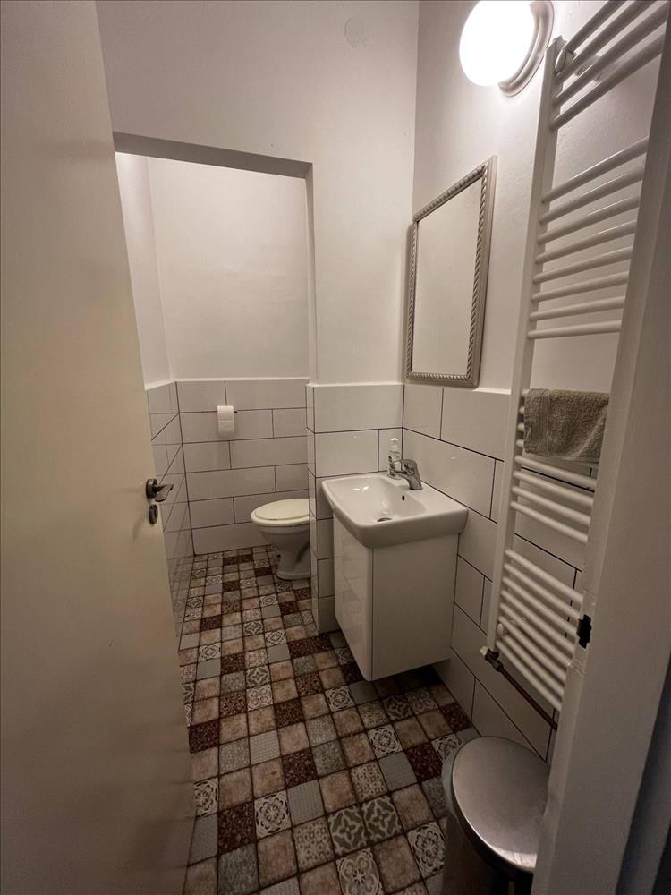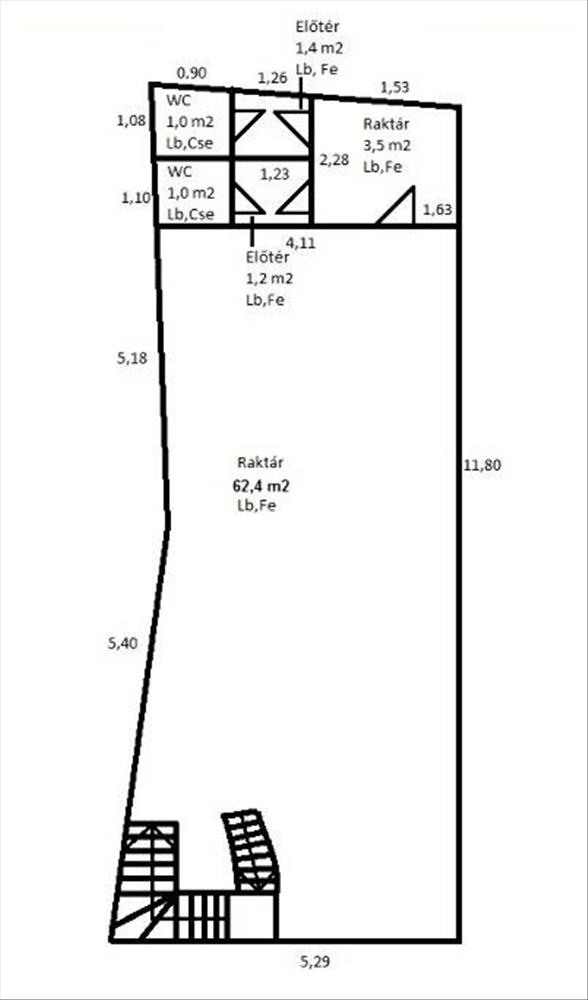 A fenti ügyféltér 36 nm -s +teakonyha, lent pedig 62 nm -s egybefüggő tér van egy WC-vel és zuhanyzóval.