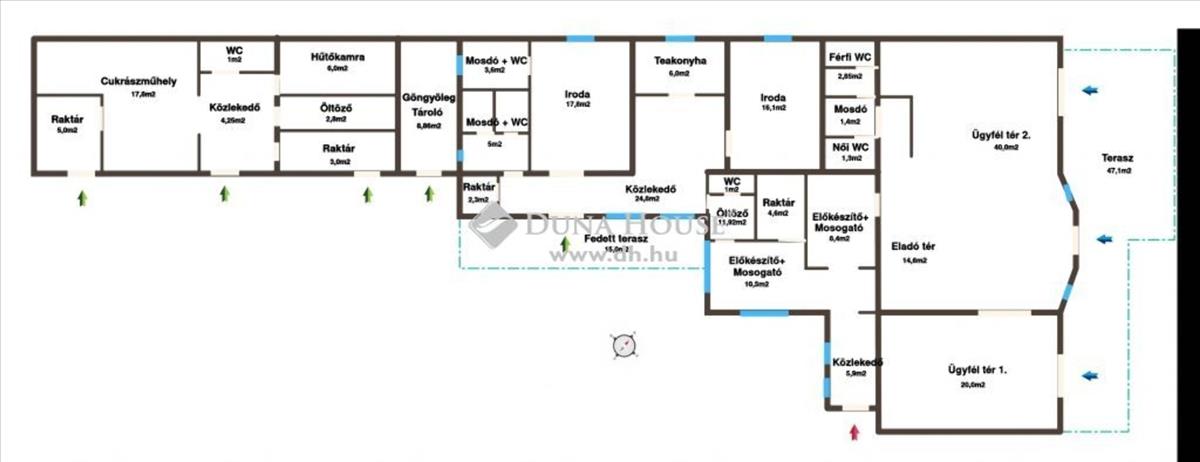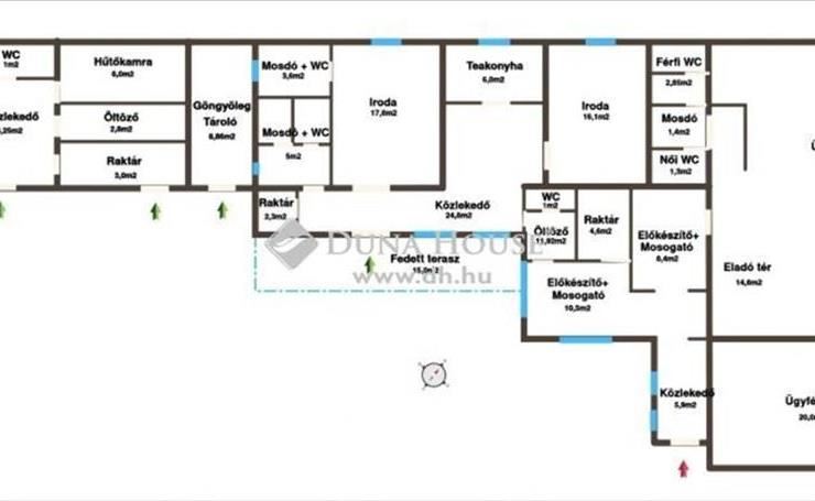 – Jól tagolt belső terek: eladótér, üzemrész, irodák