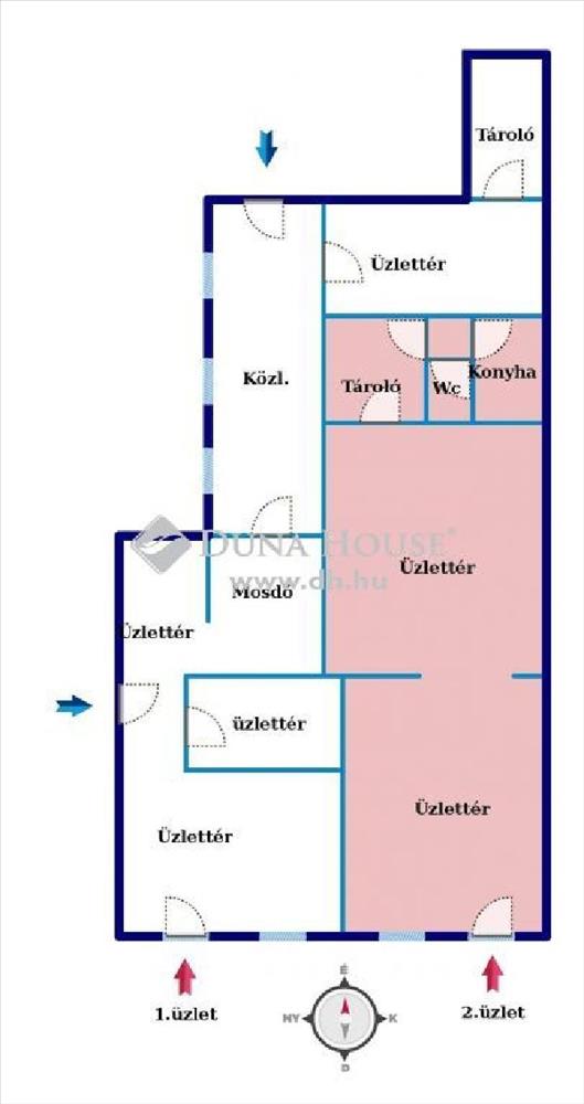 Az üzletek 65 - 65 nm alapterületűek, jogilag önálló egységek, tulajdoni lapon is külön- külön helyrajzi számon szerepelnek, korábban össze voltak nyitva, igény szerint könnyedén visszaállítható egy nagy üzlethelyiséggé.