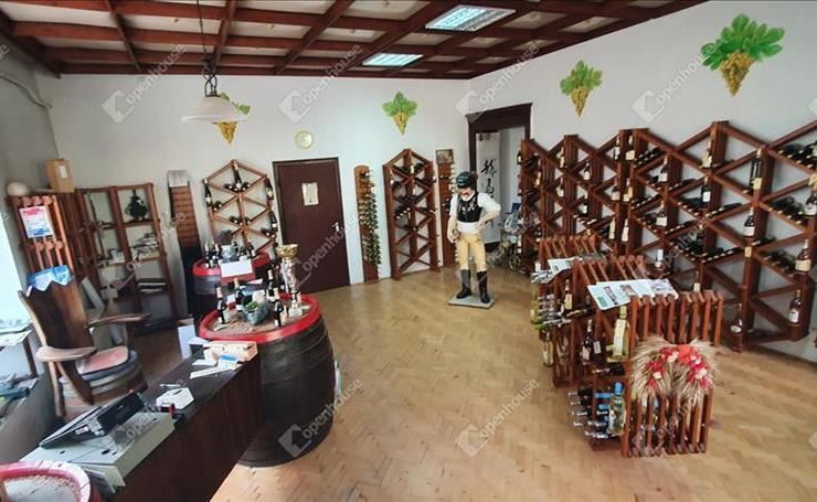 - Az üzlethelyiség (reprezentatív borház) a főutcára nyílik és jelenleg is üzemel, a teljes földszinti terület 230 m2