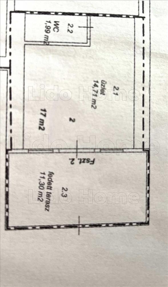 -Az üzlethelyiség 17 m2-es alapterületű, mely 14 m2-es üzlettér és 1, 99 m2 mellékhelyiség kiosztású