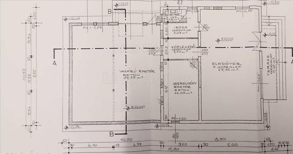 - az üzleti tér 100 m2 - található benne iroda+ étkező, wc, közlekedő, terasz