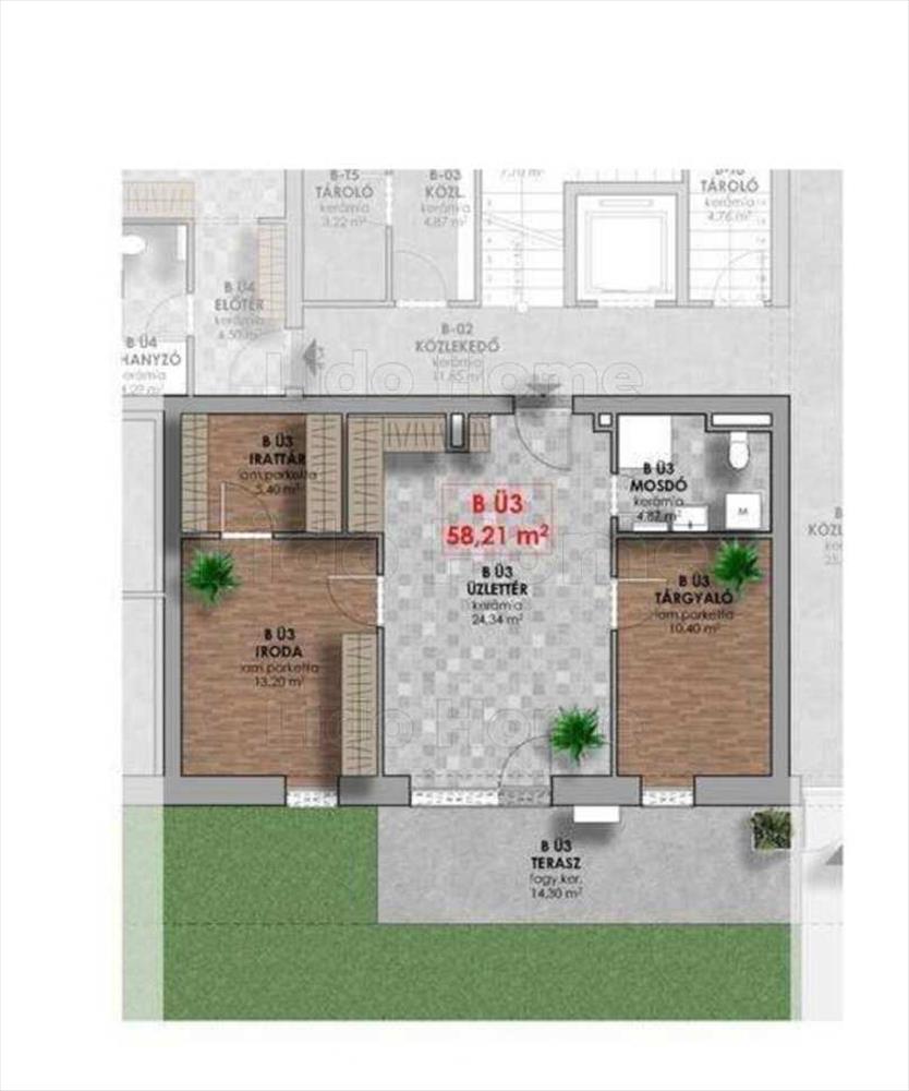 Földszint ü3 iroda, 58, 21 m2, terasz 14, 3 m2!