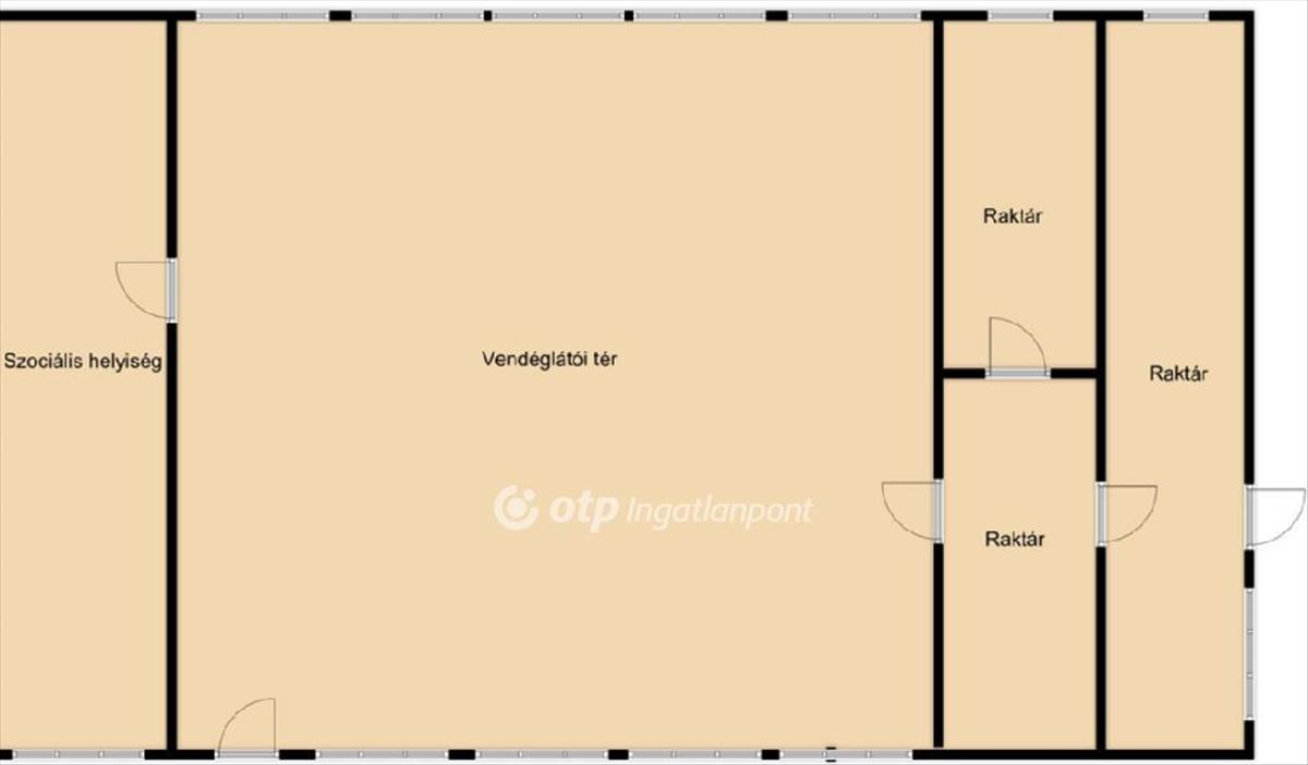 -a hátsó épületben : 97m2 vendéglátói tér, szociális helyiség, wc, előállító és tálaló, raktár helyiséggel rendelkezik.