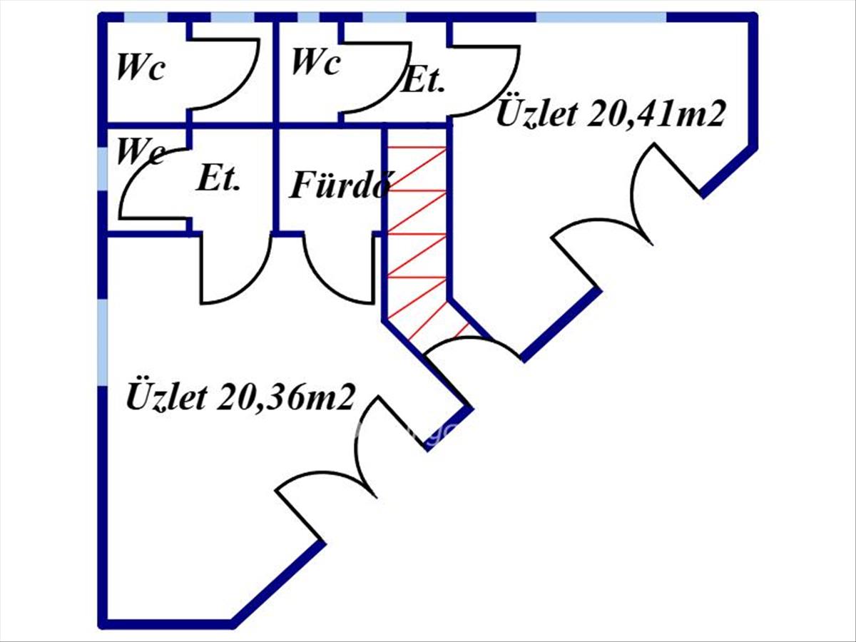 A felső szint 57, 2 négyzetméter alapterületű, ezt kettő különálló üzletté/lakássá lehet alakítani. a felső szint termosztátos gáz fűtéssel rendelkezik, a melegvizet gázkazán biztosítja. Nincs szigetelve, de porotherm téglából épült, ezért hő, illetve hangszigetelése rendkívül jó és légáteresztősége miatt egészséges életteret is biztosít a lakók számára.