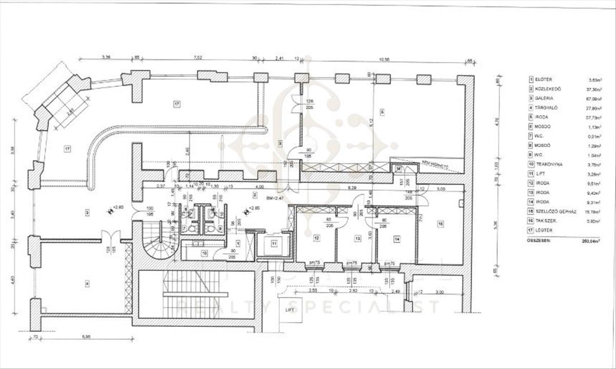 5. kerületben Batthyány Lajos-örökmécses közelében eladó házrész, 763 nm, 3 szintből álló üzlethelyiség. Földszint 444 nm-es, egy részén impozáns belmagasságú, ideális fogadó tér. Helyet kapott még ezen a szinten több nagyobb utcai nézetű szoba, illetve kiszolgáló és raktár helyiség.