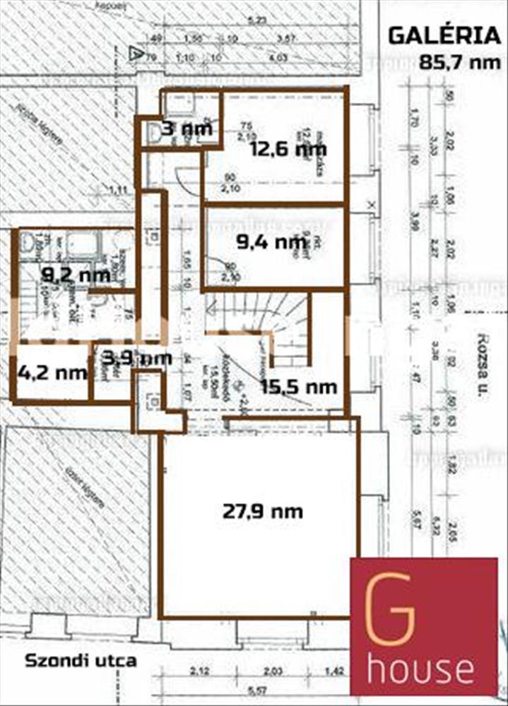 Galéria (85, 7 nm ): 28 nm -es helyiség, iroda, 3 helyiség, 2 vizesblokk