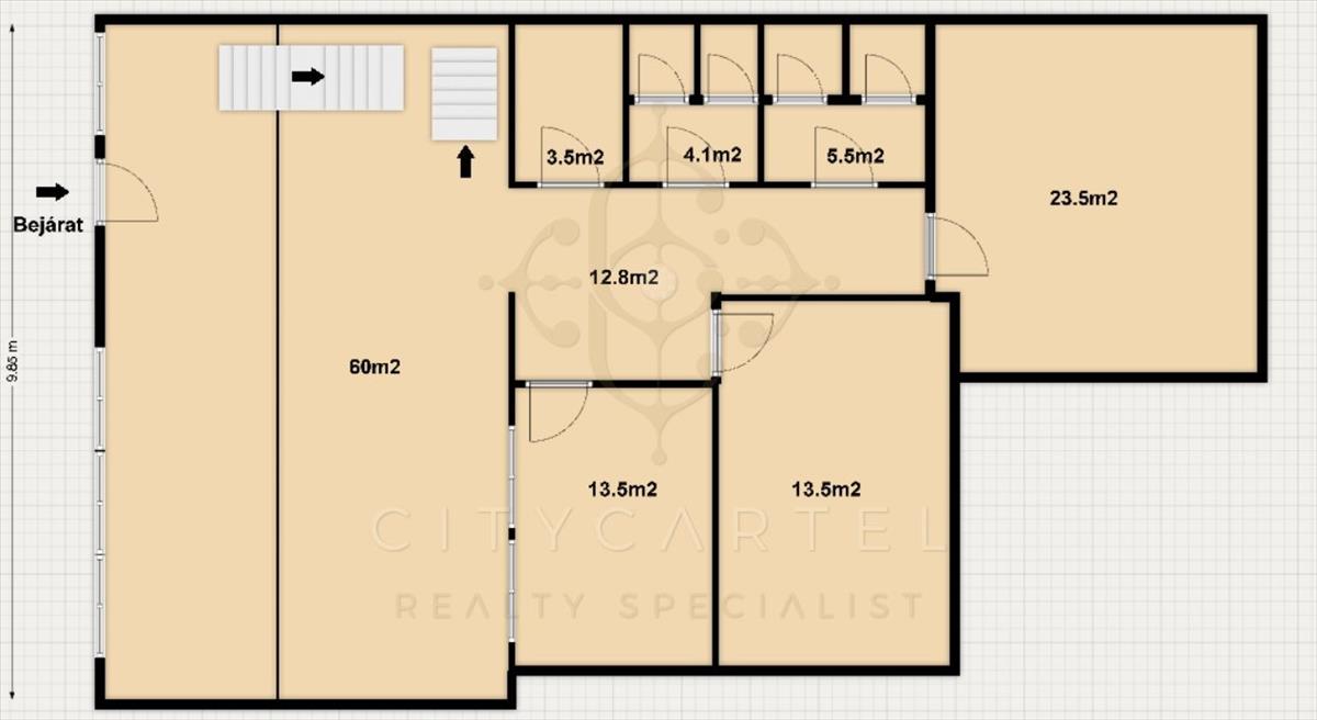 Földszint: 131 nm – 4 helyiség, fogadótér, 4 toalett