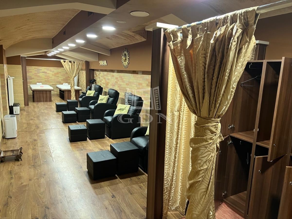 A Keleti pályaudvar közelében kiadó egy kétbejáratos több helyiségből és kiszolgáló egységekkel ellátott üzlethelyiség. Az üzlethelyiség mérete: 327 m2. Az egyik bejárata lépcsős, innen jutunk a fogadótérbe amely járólapos. a másik bejáratnál ha szükséges kialakitható lejárat szintén. Ebből nyílik a 4 masszázs szalon, valamint a közlekedő ahonnét a konyhába és a 2 fürdőszobába jutunk. 4 Wc van. a helyiségek járólaposak, a masszázsszalonok pedig szőnyegpadlósak vagy laminált parkettásak.