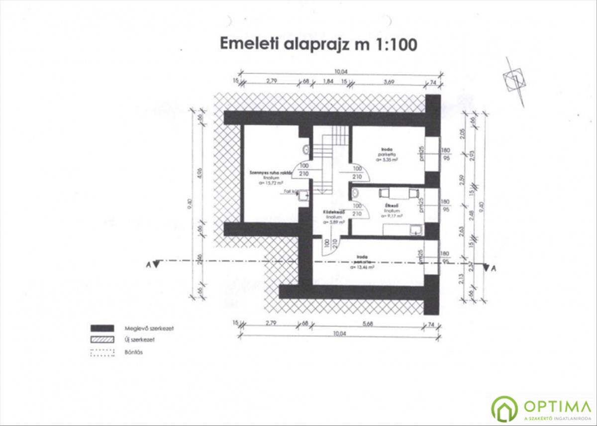 A földszinten három nagyobb helyiség található, valamint egy raktár, egy öltöző és egy zuhanyzós fürdőszoba. a lépcsőfordulóban helyezkedik el egy plusz, közel 16 m2 alapterületű raktár. Az emelet is három különnyíló helyiségből áll, itt két iroda, valamint egy teakonyha került kialakításra.