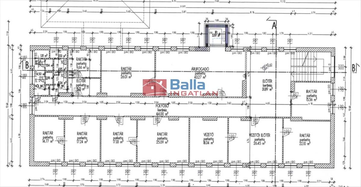 •A földszinten egy nagy méretű árufogadó helyiség található, teherbejárattal és 800 kg teherbírású, 10 személyes lifttel
