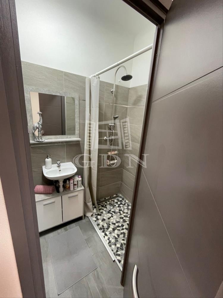 Tartozik hozzá még egy külön beépített zuhanyfülkés fürdőszoba mosdókagylóval és külön wc.