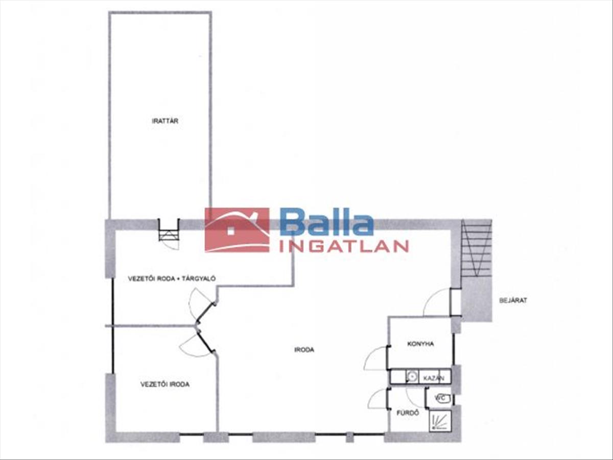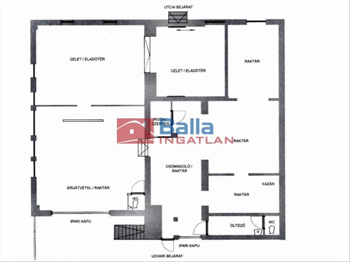 Két szinten 417 nm -es hasznos alapterülettel rendelkezik, melyhez 3 tehergépkocsi beállására is alkalmas, tolókapuval zárt, nagy teherbírásra kialakított udvar és további külső fa szerkezetű raktárak tartoznak. Felső szinten egy légterű és vezetői irodák, tárgyaló, földszinten ipari tevékenység helyiségei, raktár, bemutató terem. Összesen 12 Kiváló Állapotú helyiség, 3 wc és fürdő, öltöző, konyha, szerver szoba, raktár és pihenő helyiség.