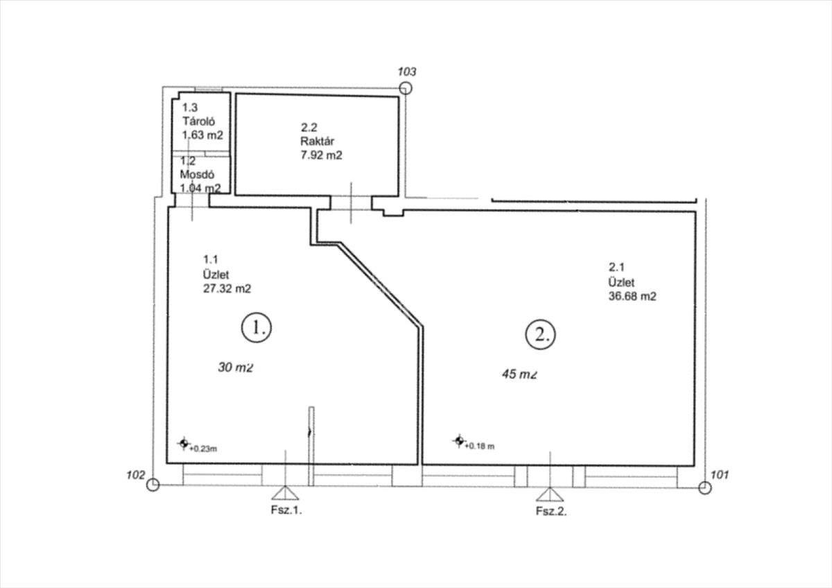 A két üzlethelyiség jelenlegi elosztása a következő: