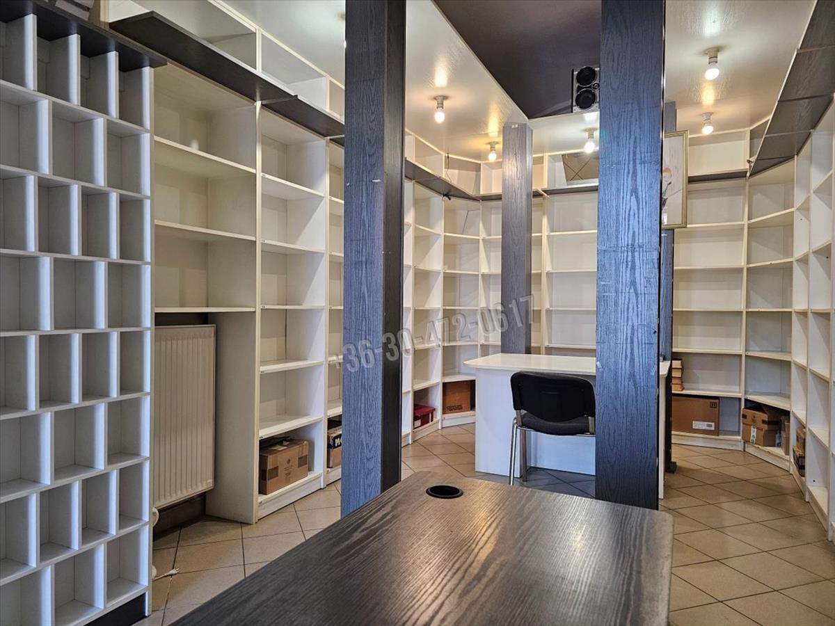 Egy nagy, L-alakú helyiségből, egy kis iroda/raktárból, és egy előtérből nyíló WC-ből áll. Az utcafrontról egy másik bejárat is van, megnyitásával több természetes fényt kaphat az ingatlan.
