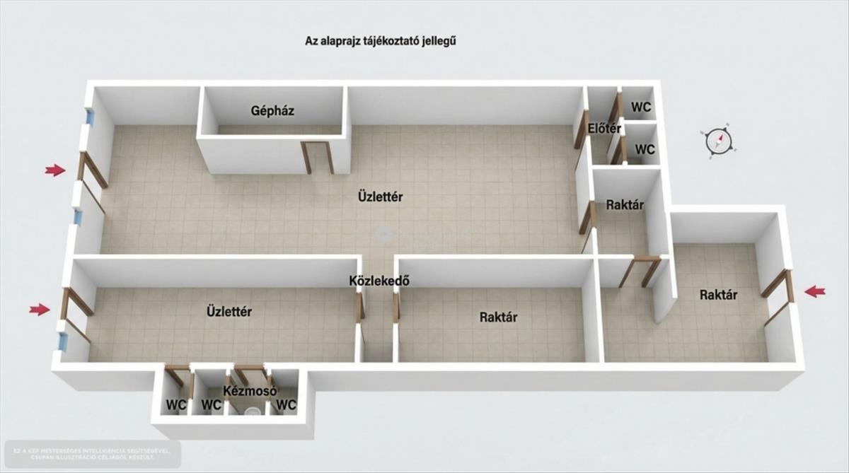 Az ingatlan nem lakóházzá minősített, kialakítása üzleti-ipari célokat szolgál. Korábban kereskedelmi funkciókat látott el, jelenlegi adottságai alapján elsősorban raktározásra, illetve lakóövezetbe beilleszthető vállalkozásii tevékenységre alkalmas.