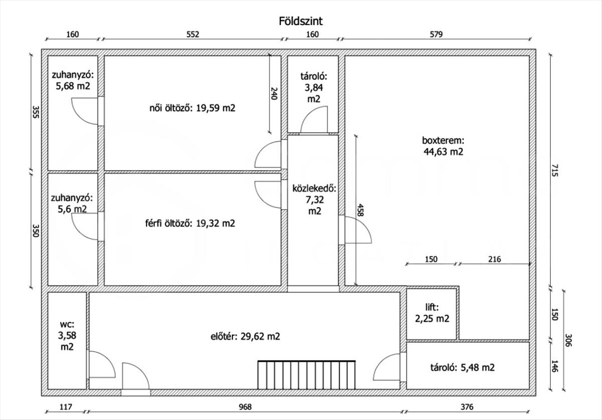 -Sportolói területek: Bokszterem, női és férfi öltözők zuhanyzókkal.