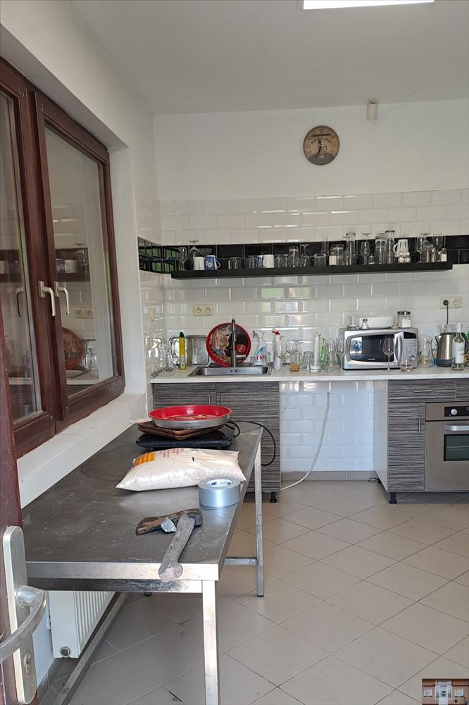 A földszinten található benne vendégtér, konyha, 1 szervízszoba, női-, férfi és személyzeti wc, zuhany, valamint raktár.