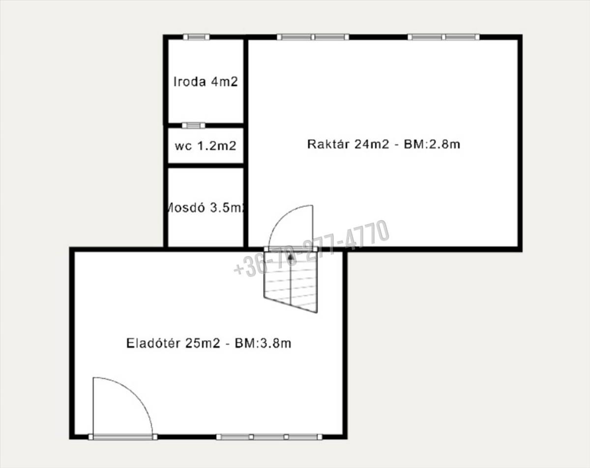Jelenlegi elrendezését tekintve 2 nagy helyiség/eladótér/szoba és egy félszoba mely jelenleg irodaként használt. Mellékhelyiség és és pici konyha van kialakítva, de fürdőszoba jelenleg nincs külön kialakítva.