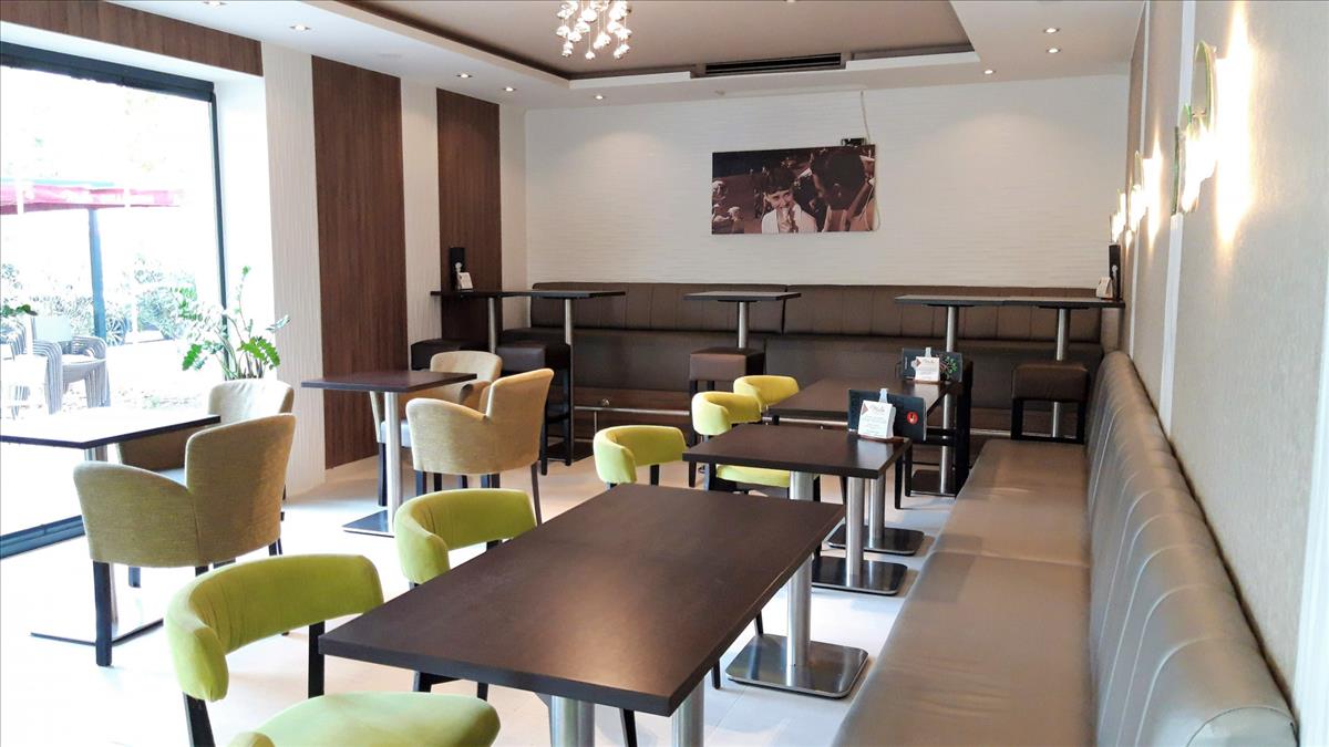 -Kétszintes cukrászda, kávézó, étterem.