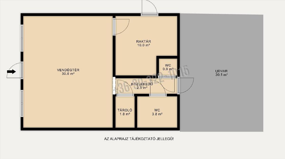 Alapterület: 50 nm , ebből 30 nm a vendégtér és kiszolgálórész, a fennm aradó tér raktárnak és vendég toaletteknek ad helyet.