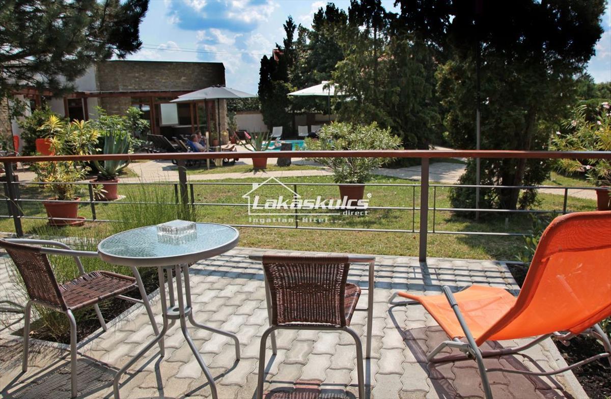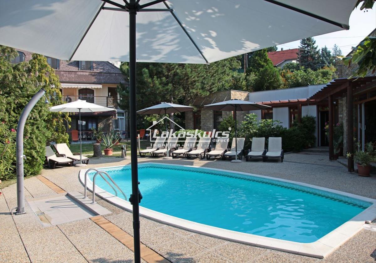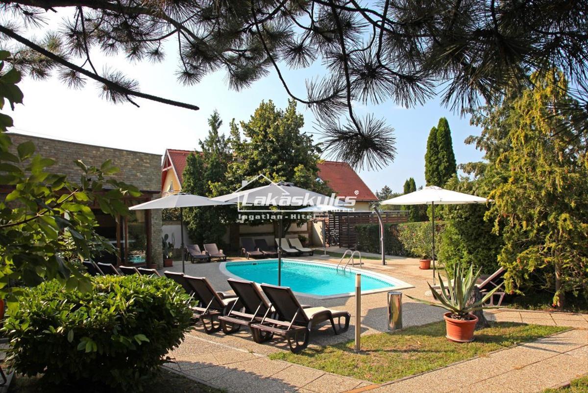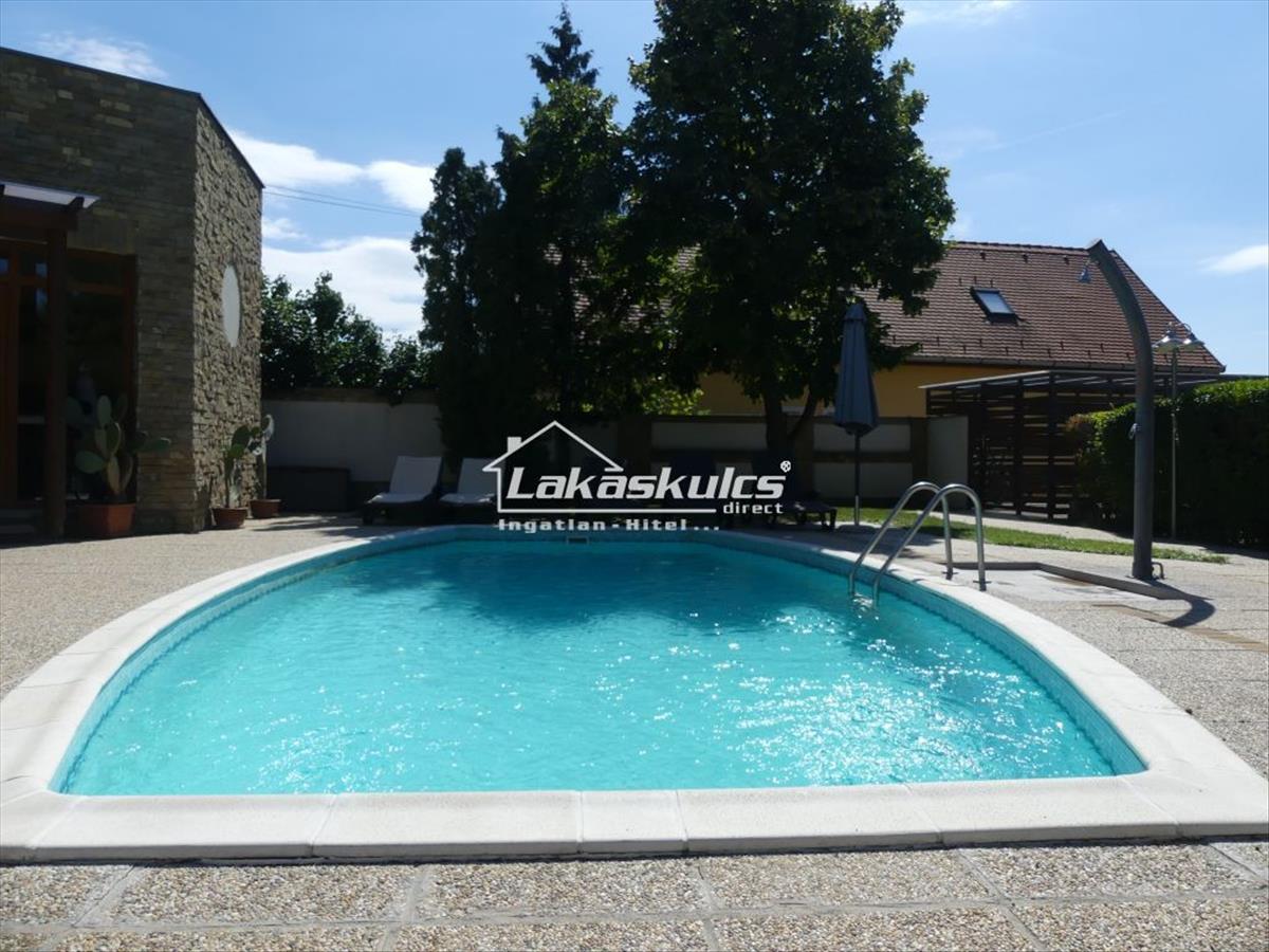 Az ápolt, parkositott kertben fűthető medence/8*4m nagyságú, üvegkristályos szűrőrendszerrel, automata vegyszeradagolóval ellátva.