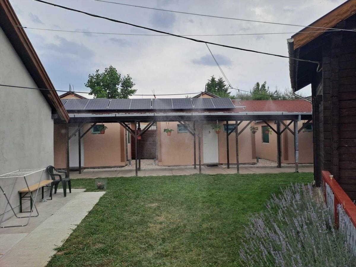 A hangulatot tovább gazdagítja egy régi parasztház, amely jelenleg raktárként és szervizként funkcionál, illetve egy melléképület, ahol további tárolási lehetőség biztosított. a parasztház teljes felújítást igényel vagy igény esetén bontandó. a kemping elektromos árammal (3×32a) és 8 kW-os saját napelemrendszerrel rendelkezik, a fűtés-hűtés minden egységben elektromosan, klímával megoldott. a pince praktikus tárolási lehetőséget kínál, az udvar pedig gondozott, részben térkövezett és könnyen karbantartható.