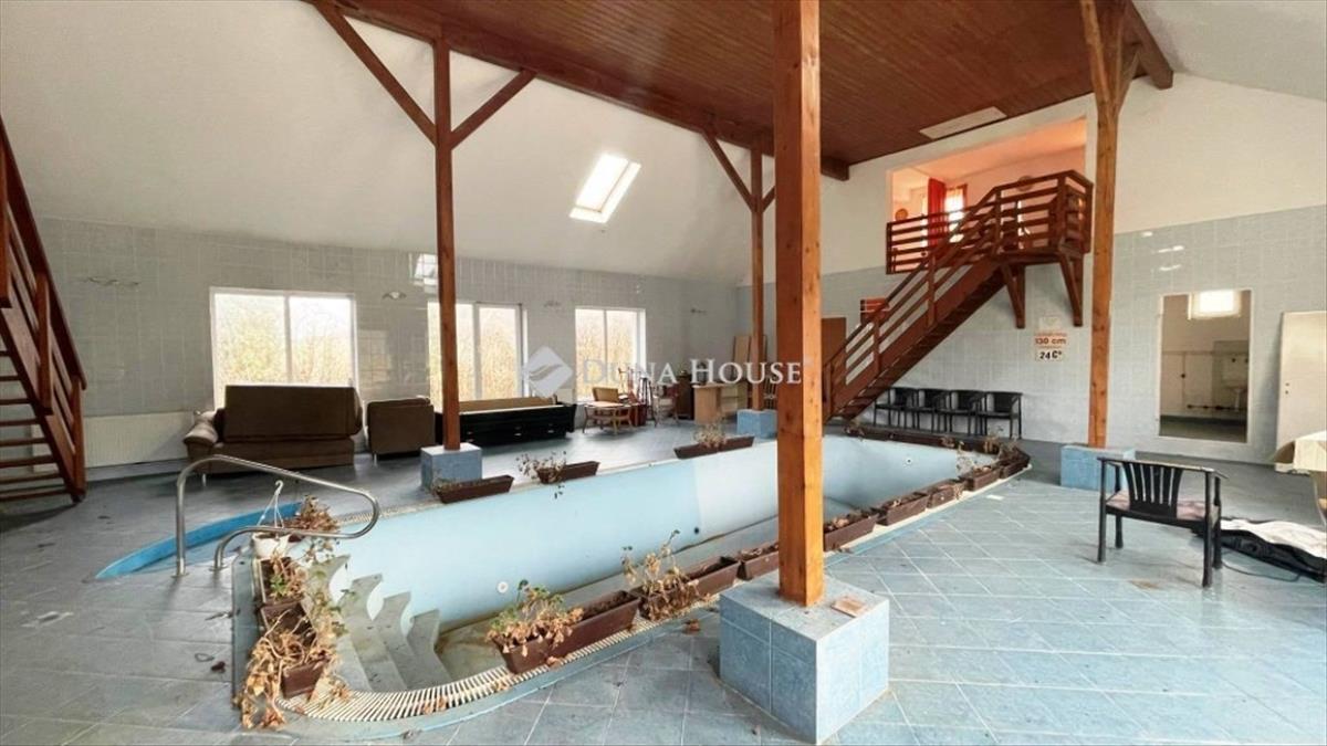 Fantasztikus befektetési lehetőséget ajánlok Alsóújlakon! Hatalmas 16728 nm-es külterületi telken kezdődött 1993-ban a 3 épületből álló kivételes ingatlan megvalósítása. Először az étterem és panzió készült majd az üzlethelyiség és 2000-ben a wellness épület. a három épület összesen több, mint 1000 nm hasznos alapterülettel rendelkezik. a panzióban 15 szoba külön fürdőszobával áll rendelkezésre. Jelenlegi kialakításával étterem és panzióként kis ráfordítással tovább üzemeltethető. Saját konyhával, kiszolgáló egységekkel rendelkezik, a haccp előírásainak teljes mértékben megfelel és teljes berendezéssel veheti birtokba az új tulajdonos. a panzió épülete mögött fekvő wellness épületben található medence (felújítást igényel), a galérián a szobák tökéletes feltöltődést nyújthat a vendégeknek. Az épületek fűtéséről vegyestüzelésű kazán gondoskodik, radiátoros hőleadással, de a panzióban egy hatalmas cserépkályha is van, illetve klímát is szereltek. Ez az ingatlan tökéletes hely vállalkozása fejlesztésére, hiszen kiváló lokációval rendelkezik, emiatt a vendéglátáson kívül számos lehetőség rejlik benne, akár munkásszálló, a nyugalmas környezet miatt idősek otthona, de önnek biztos van jobb ötlete is, amivel hasznosítani tudja ennek a remek ingatlannak az adottságait! Sorolhatnám hosszasan az előnyöket, de ezt inkább látnia kell! Kérem hívjon mielőbb, hogy személyesen tudjam bemutatni ezt a lenyűgöző ingatlant!