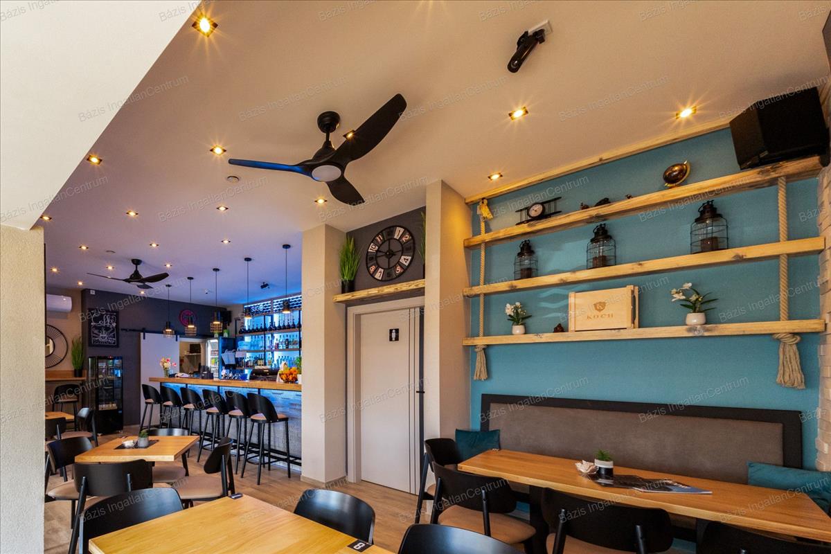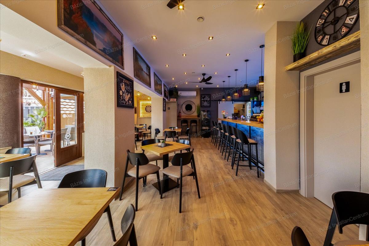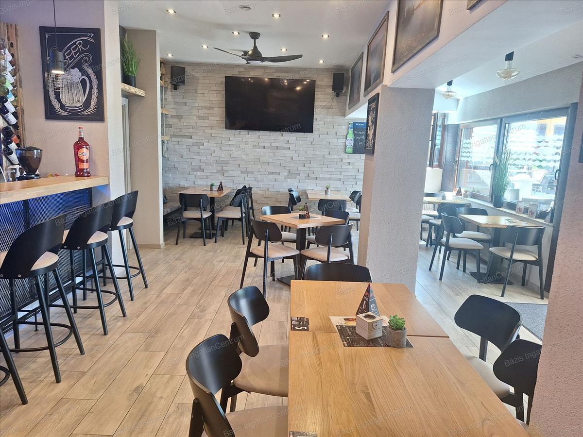 Bács-Kiskun megye, Baja, kiváló állapotban lévő, 2024-ben teljeskörűen felújított vendéglátóhelyiség eladó. Az ingatlan 90 m²-es belső térrel, egy 60 m²-es terasszal, valamint egy jelenleg kihasználatlan tetőterasszal rendelkezik, amely további lehetőségeket rejt magában. Az ingatlan minden előírásnak megfelelően lett kialakítva: külön női és férfi vendégmosdóval, valamint egy személyzeti mellékhelyiséggel felszerelt. a nyílászárók háromrétegű hőszigetelt üveggel ellátottak, biztosítva a kiváló hő- és hangszigetelést. Az üzlet prémium minőségű bútorzattal berendezett, amely a vételár részét képezi. a vendéglátóipari gépek külön megállapodás tárgyát képezik, ezek szintén felső kategóriás berendezések. a 2024-es teljes felújítás során minden közmű – víz, szennyvíz, villany, gáz – cseréje megtörtént. a fűtésről kondenzációs kazán, illetve egy modern hűtő-fűtő rendszer gondoskodik, így a helyiség minden évszakban energiatakarékosan üzemeltethető. a vendéglátóhely elhelyezkedésének, műszaki állapotának és esztétikai kivitelének köszönhetően kiváló befektetési lehetőséget jelent akár kávézó, bár vagy más vendéglátóegység kialakítására. További információért és megtekintés egyeztetéséhez kérem, vegye fel velem a kapcsolatot! Hitel.hu - Hasonlítsa össze a bankok lakáshitel ajánlatait