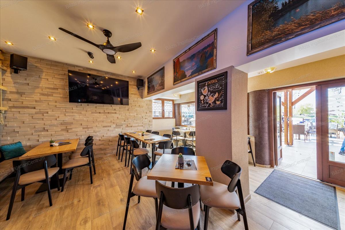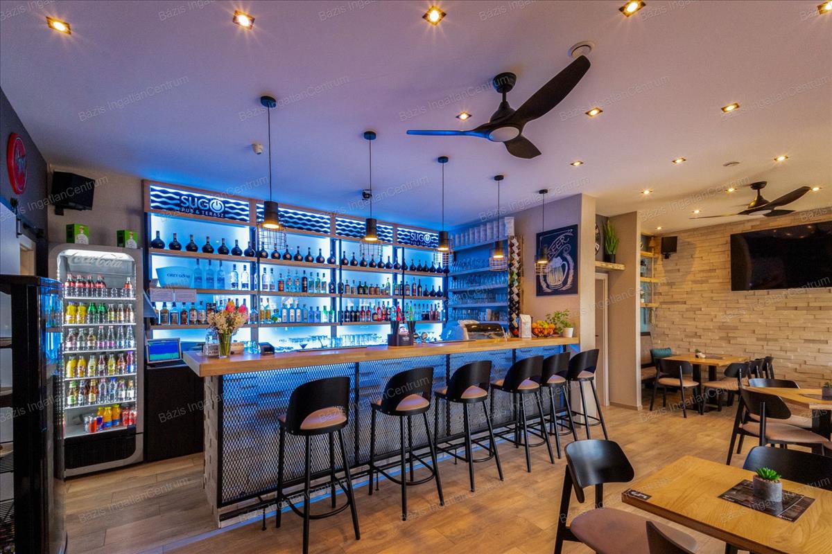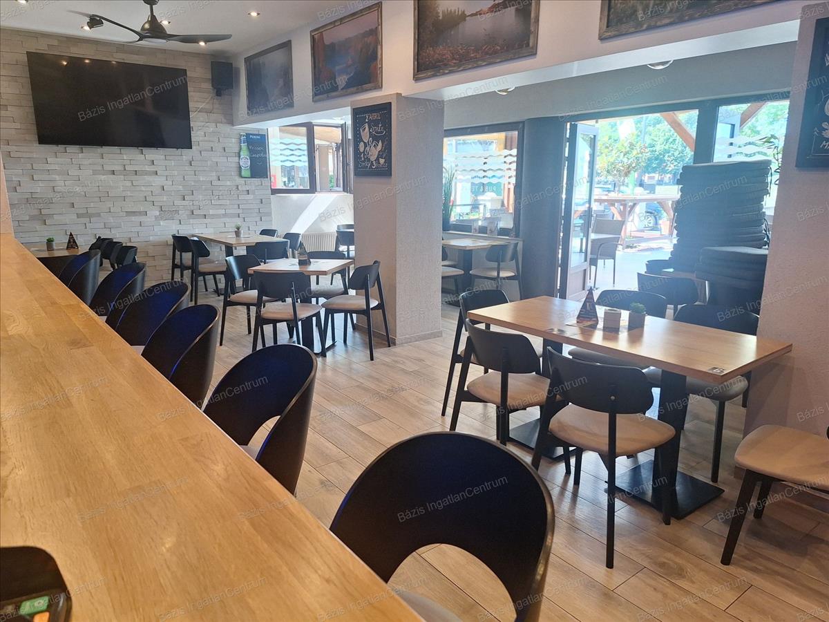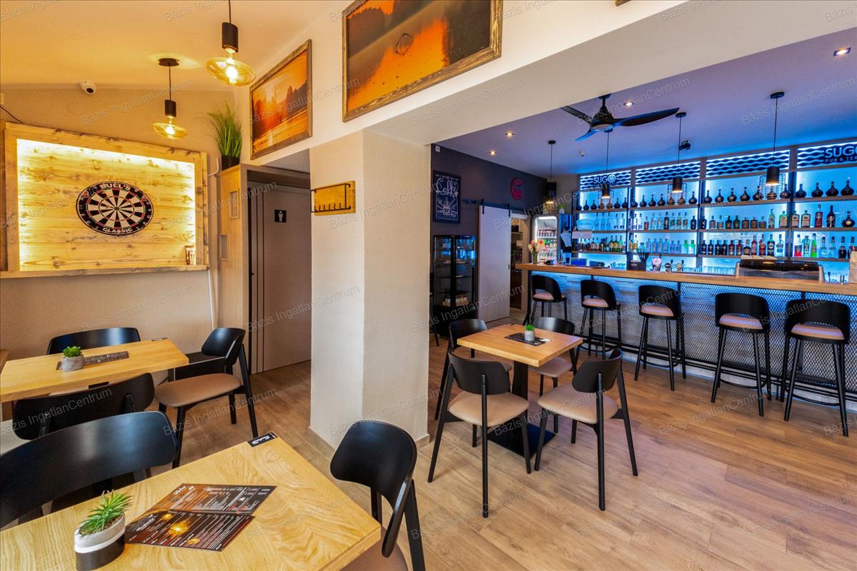 Bács-Kiskun megye, Baja, kiváló állapotban lévő, 2024-ben teljeskörűen felújított vendéglátóhelyiség eladó. Az ingatlan 90 m²-es belső térrel, egy 60 m²-es terasszal, valamint egy jelenleg kihasználatlan tetőterasszal rendelkezik, amely további lehetőségeket rejt magában. Az ingatlan minden előírásnak megfelelően lett kialakítva: külön női és férfi vendégmosdóval, valamint egy személyzeti mellékhelyiséggel felszerelt. a nyílászárók háromrétegű hőszigetelt üveggel ellátottak, biztosítva a kiváló hő- és hangszigetelést. Az üzlet prémium minőségű bútorzattal berendezett, amely a vételár részét képezi. a vendéglátóipari gépek külön megállapodás tárgyát képezik, ezek szintén felső kategóriás berendezések. a 2024-es teljes felújítás során minden közmű – víz, szennyvíz, villany, gáz – cseréje megtörtént. a fűtésről kondenzációs kazán, illetve egy modern hűtő-fűtő rendszer gondoskodik, így a helyiség minden évszakban energiatakarékosan üzemeltethető. a vendéglátóhely elhelyezkedésének, műszaki állapotának és esztétikai kivitelének köszönhetően kiváló befektetési lehetőséget jelent akár kávézó, bár vagy más vendéglátóegység kialakítására. További információért és megtekintés egyeztetéséhez kérem, vegye fel velem a kapcsolatot! Hitel.hu - Hasonlítsa össze a bankok lakáshitel ajánlatait